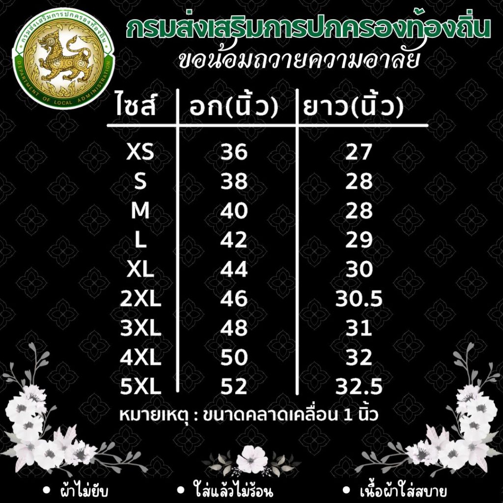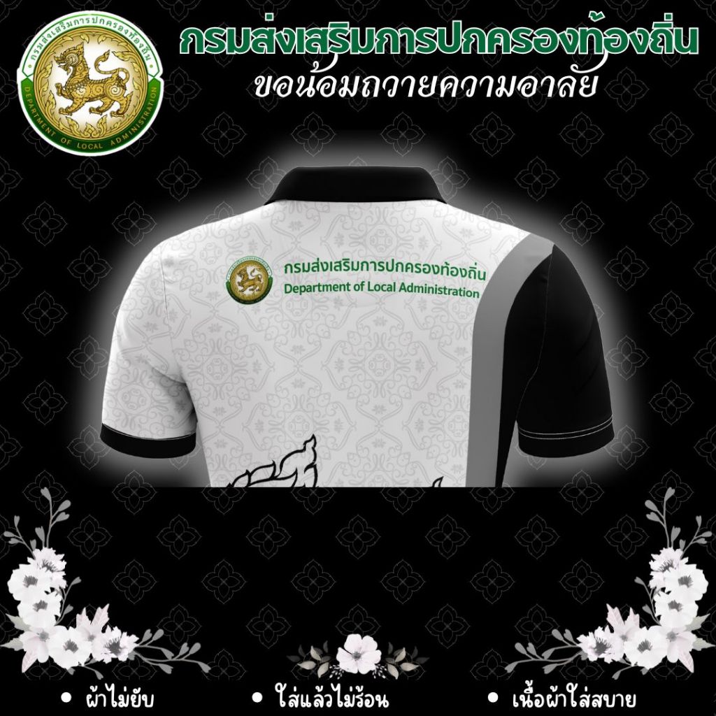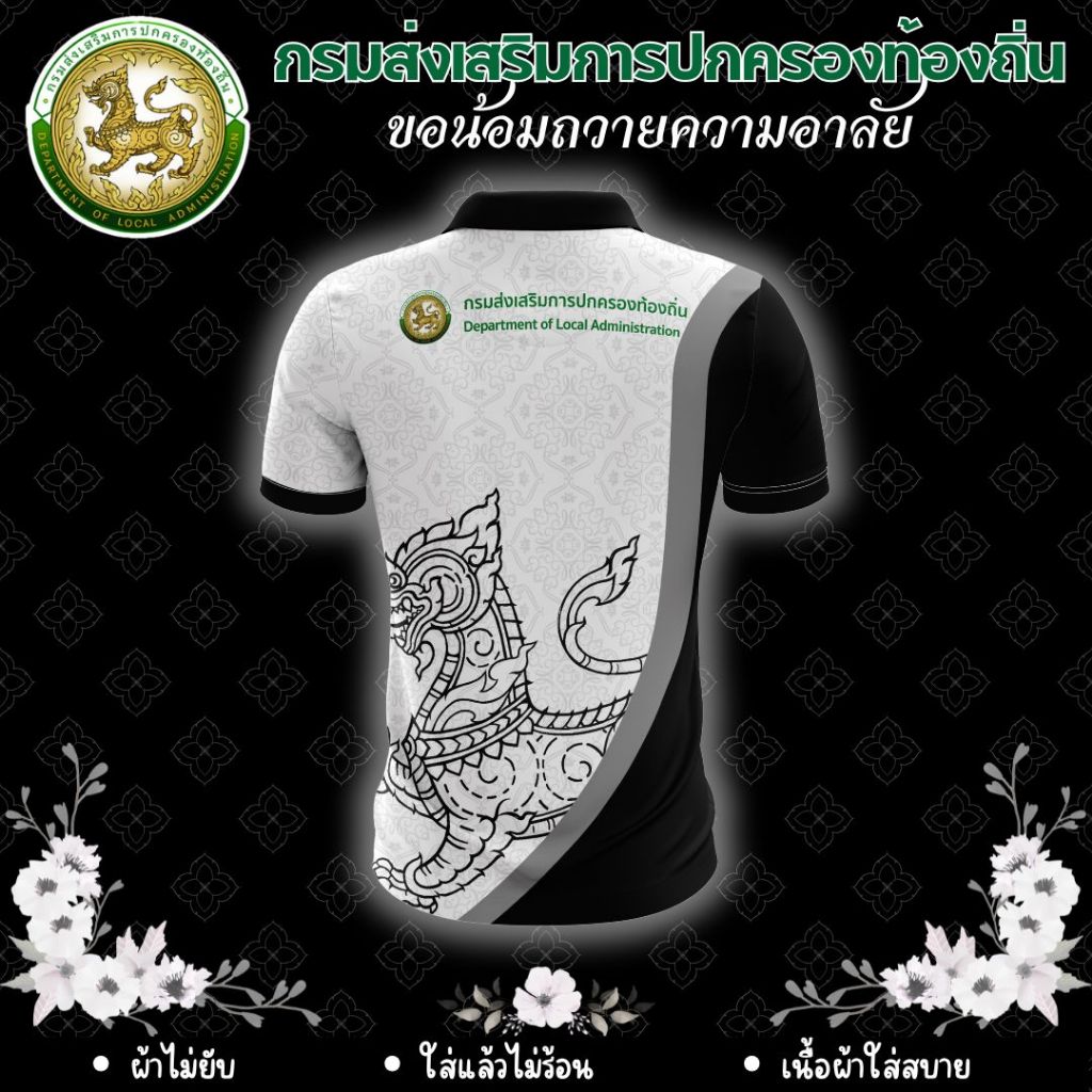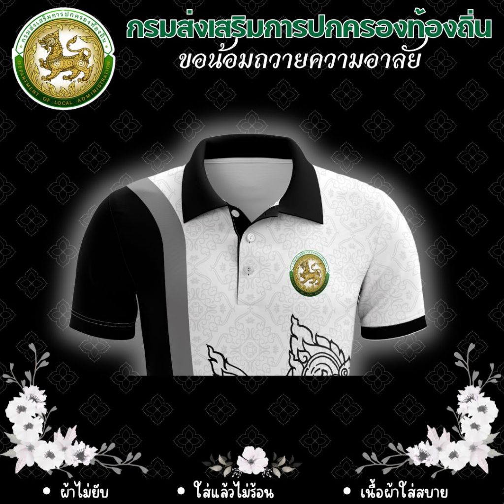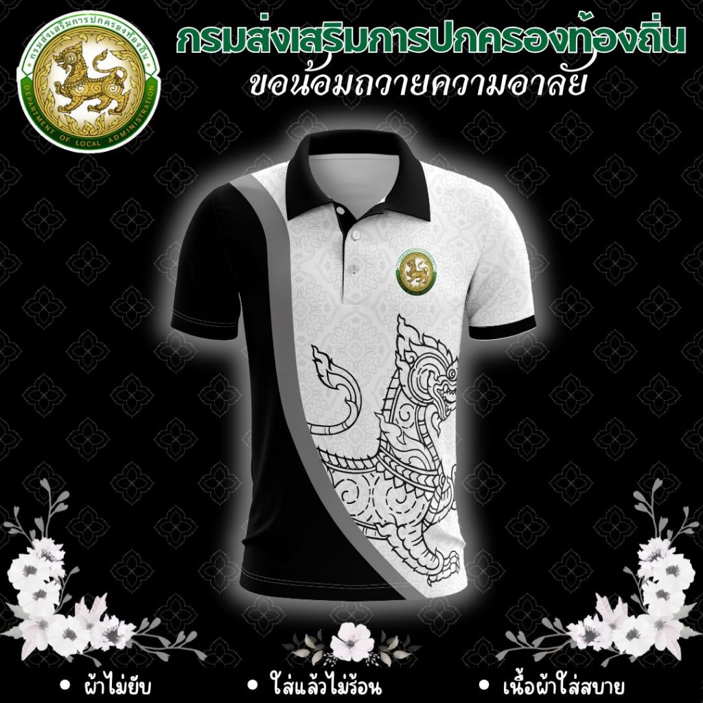 เสื้อโปโล คอปก สีดำ ถวายความอาลัย กรมส่งเสริมการปกครองส่วนท้องถิ่น เสื้อกรมส่งเสริมการปกครอง ตราการปกครองส่วนท้องถิ่น