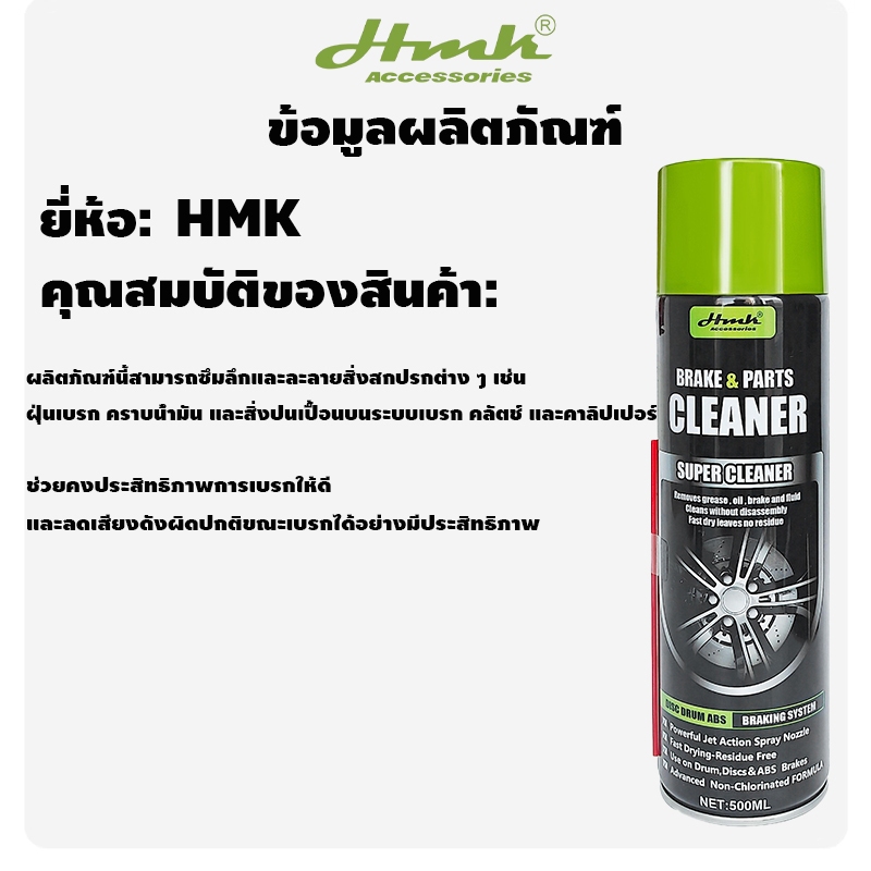 HMK สเปรย์ทำความสะอาดระบบเบรค น้ำยาทำความสะอาดเบรค ขจัดคราบหมดจด แห้งเร็ว สำหรับจานเบรค 500ml