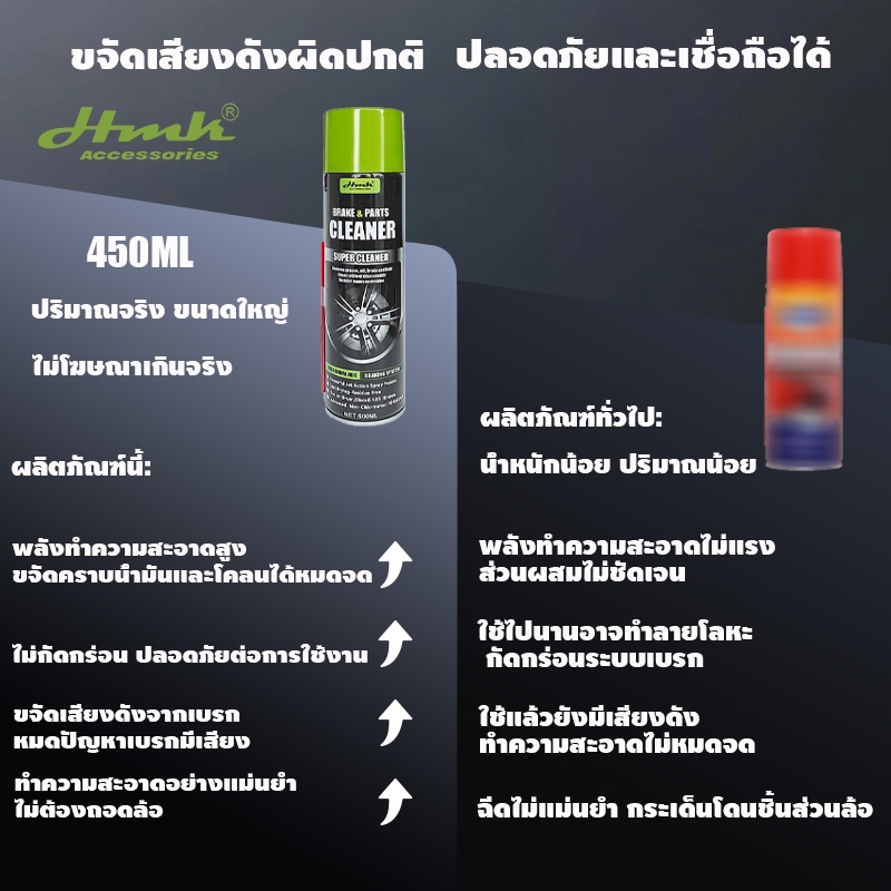 HMKทำความสะอาดเบรค500ML ทำความสะอาดจานเบรกโดยไม่ต้องถอดชิ้นส่วน ขจัดคราบหมดจด น้ำยาทำความสะอาดเบรค
