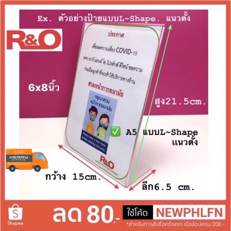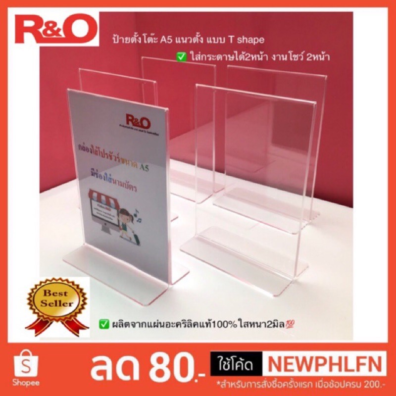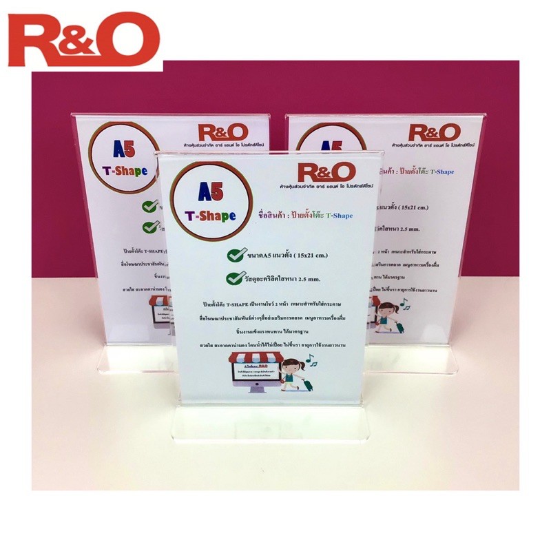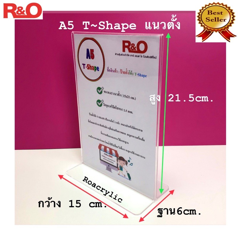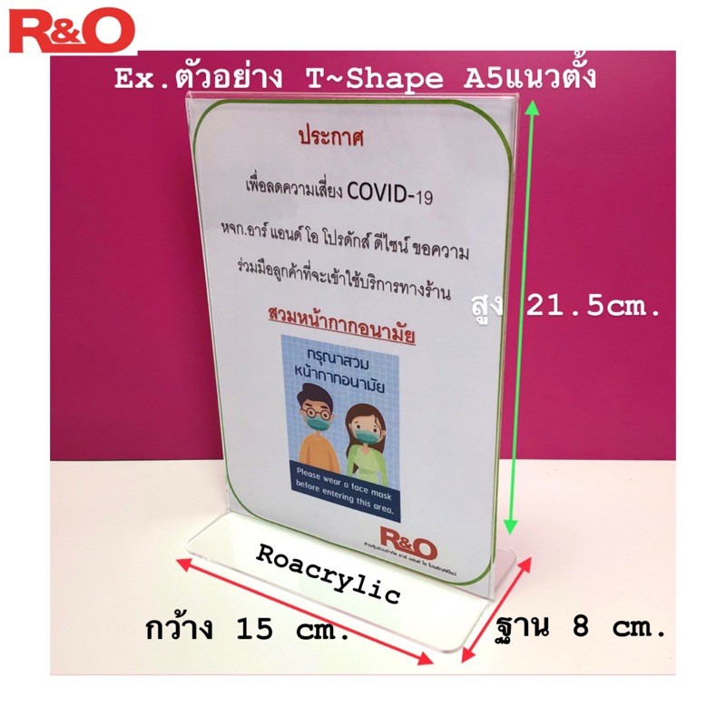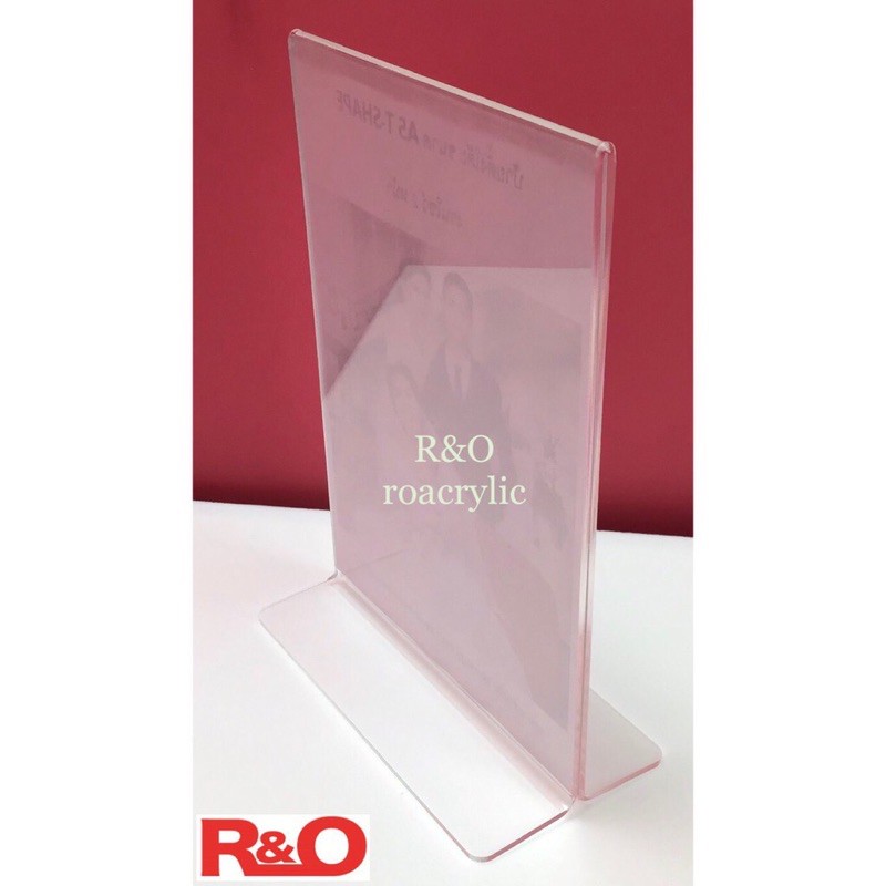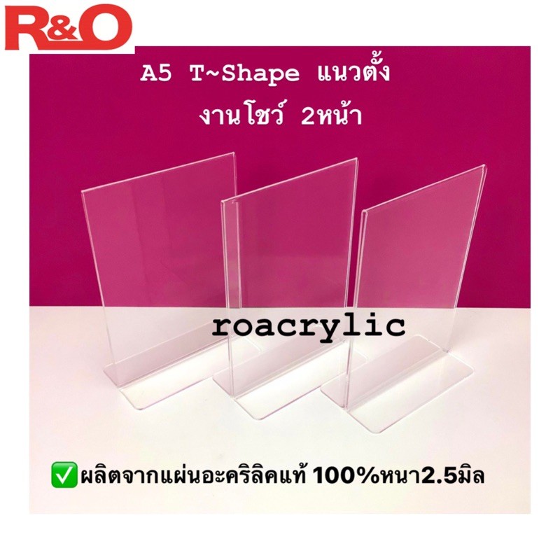 roacrylic ป้ายตั้งโต๊ะ A5 แนวตั้ง ตัวT-ShapeและตัวL-Sape ขนาด 15x21cm. ป้าย(6×8นิ้ว)