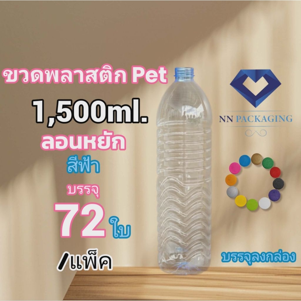 ขวดพลาสติก Pet ขนาด 1,500ml. ลอนหยัก [สีฟ้า] ปากสั้น 29mm. พร้อมฝาฟรีมีให้เลือกมากมายหลากหลายสี ขนาดบรรจุ/แพ็ค,40ใบ,72ใบ