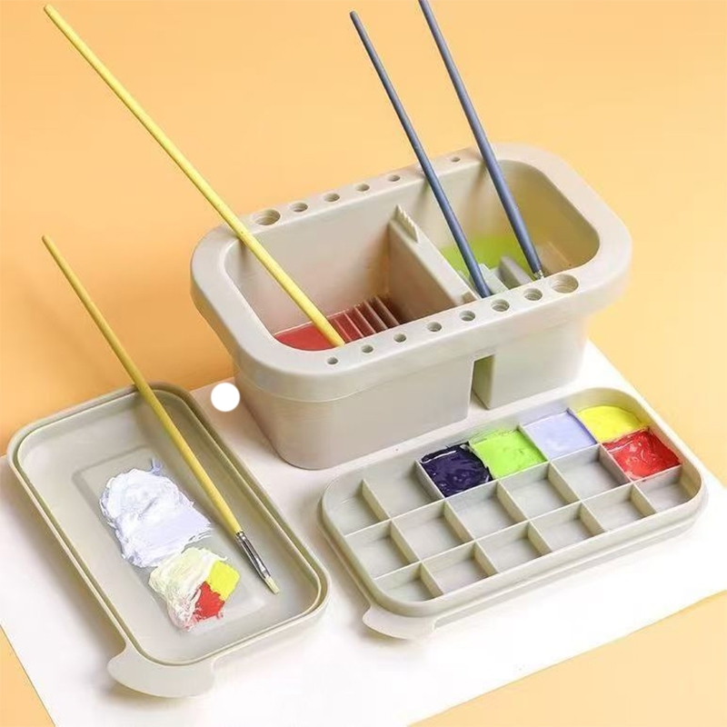 O&D Color ถังล้างแปรง 3 ใน 1 พร้อมจานสีสีสีน้ำกรณีปากกาทำความสะอาดชุดแปรงถืออุปกรณ์ศิลปะ Paint Brush Rinser