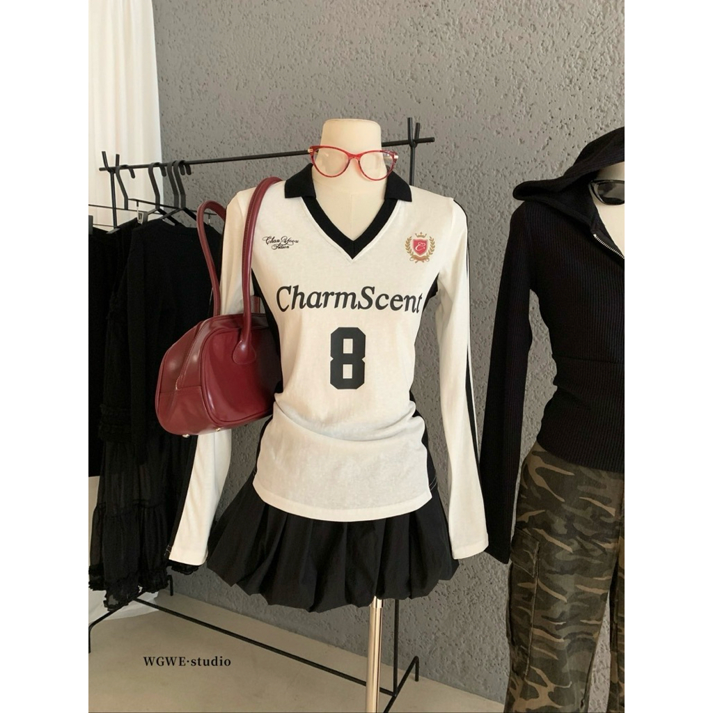 7631# เสื้อแขนยาวคอปก สกรีนลายช่วงอก เนื้อผ้าดี ทรงสวย TAG:WG.WE ??