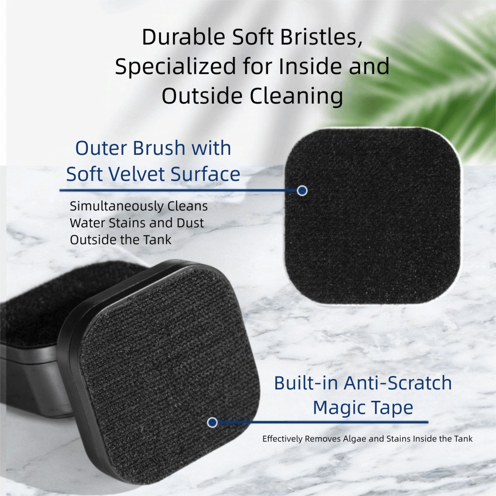 รัสซิก น้ํายาทําความสะอาดกระจกตู้ปลา, แปรงทําความสะอาดกระจกขนาดเล็กพลาสติก, เครื่องมือบํารุงรักษาแม่เหล็กใช้งานง่าย, ตู้ปลาขูดสาหร่ายสี่เหลี่