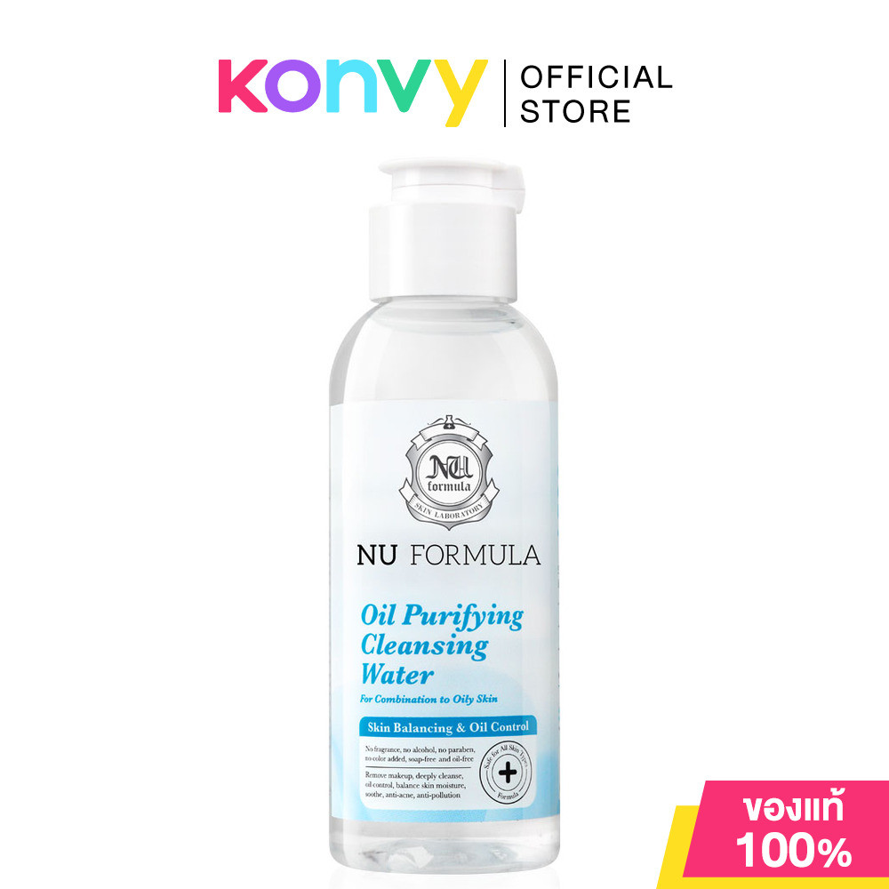 Nu Formula Oil Purifying Cleansing Water 100ml ตัดจบทุกวงจรสิว! ด้วยคลีนซิ่งไมเซลล่า สำหรับผิวผสม-ผิวมัน จากนู ฟอร์มูล่า ด้วยอนุภาคไมเซลล่าธรรมชาติขจัดสิ่งอุดตันและความมันได้อย่างล้ำลึกกว่าโดยไม่ทิ้งความมันตกค้าง ทำความสะอาดโดยไม่ทำลายสารเคลือบผิวธรรมชาติ