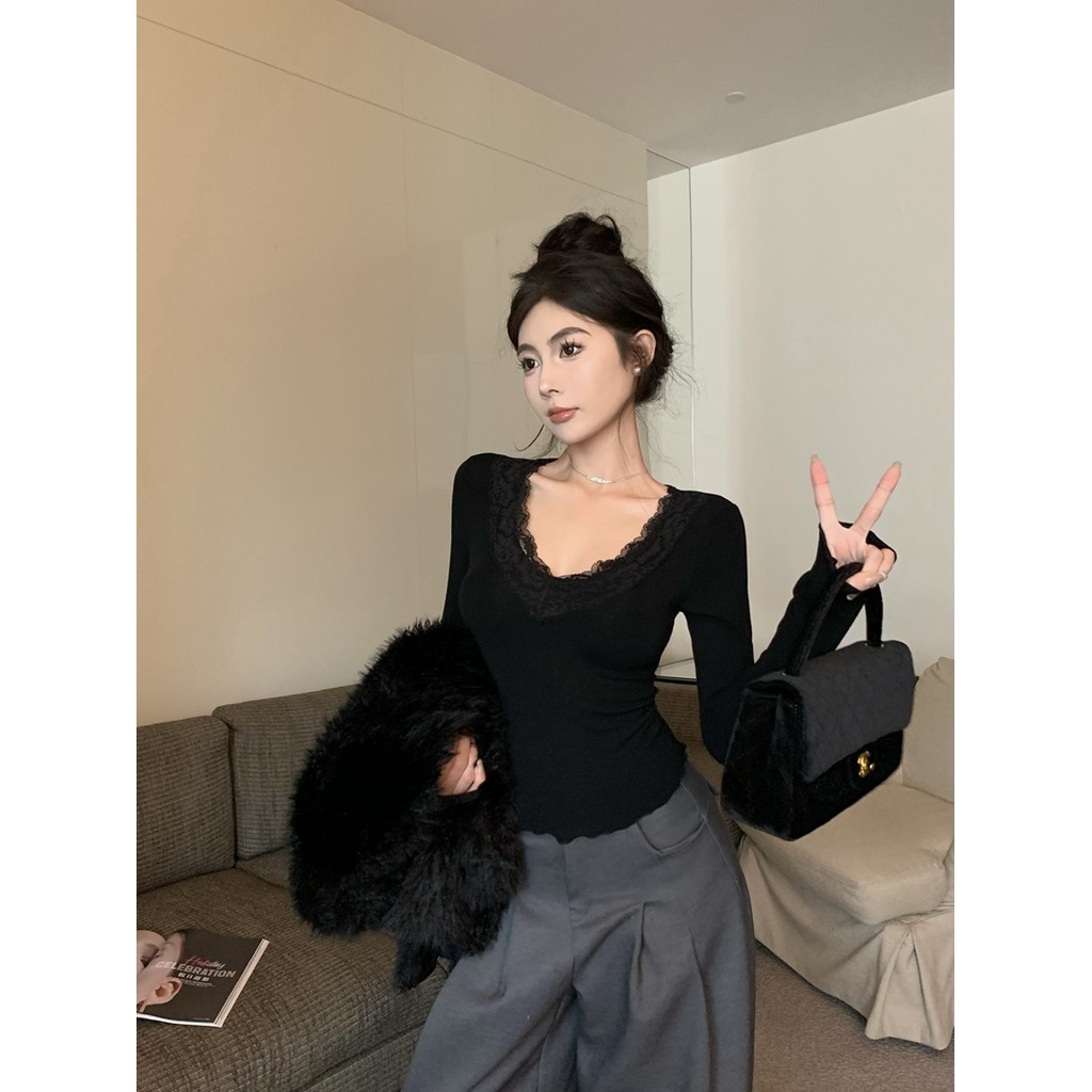 QY.shop สไตล์เกาหลี เสื้อแขนยาวผู้หญิง เสื้อคอกลม สีพื้น เต็มตัว ผ้าใส่สบาย “FY66045”