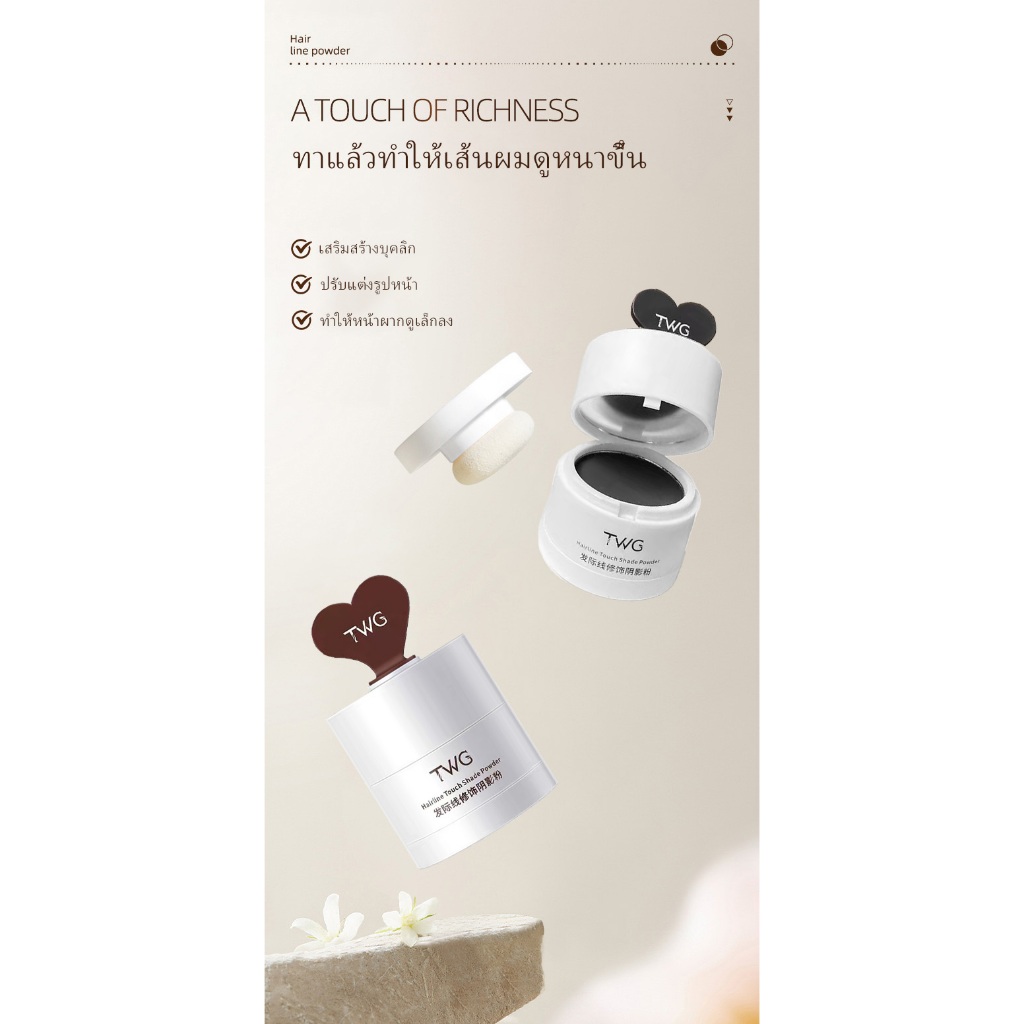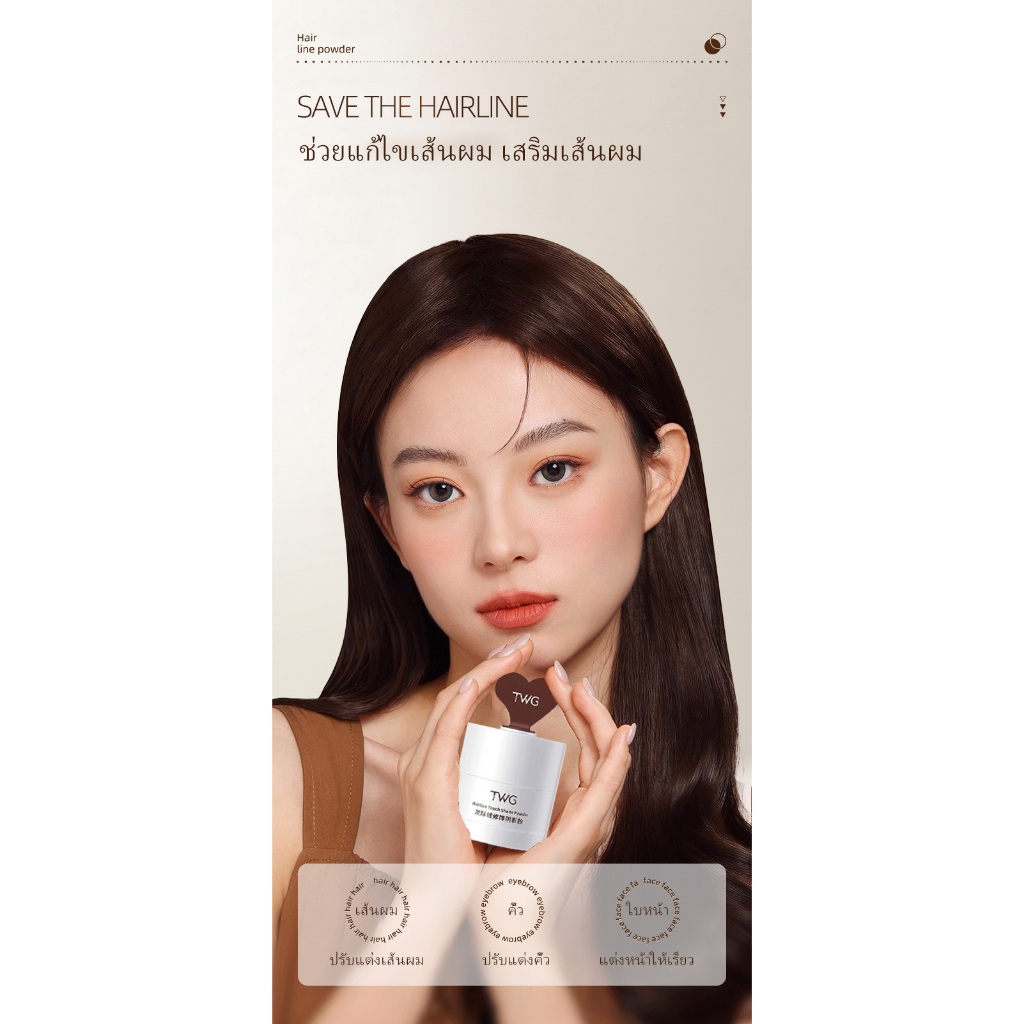 TWGแป้งฝุ่นสำหรับเส้นผมแป้งแฮร์ไลน์ แบบฝุ่น เติมหน้าผาก ปกปิดขมับ ปิดผมบาง ผมหงอก หัวเหม่ง