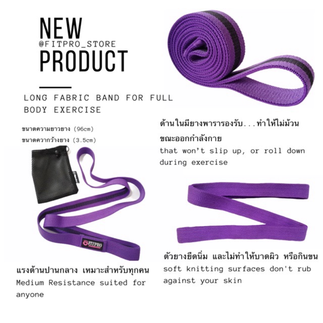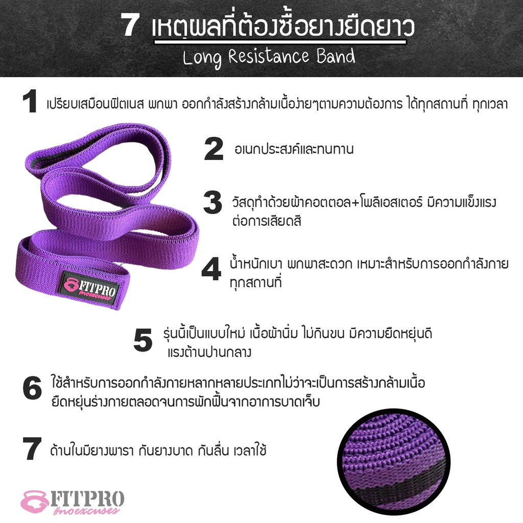 ยางยืดออกกำลังกายยาว Fitpro Long Resistance Band / ยางยืดวงแหวนผ้า แบบยาว ใช้ออกกำลังกาย แขน ขา ไหล่ หลัง อก หน้าท้อง !