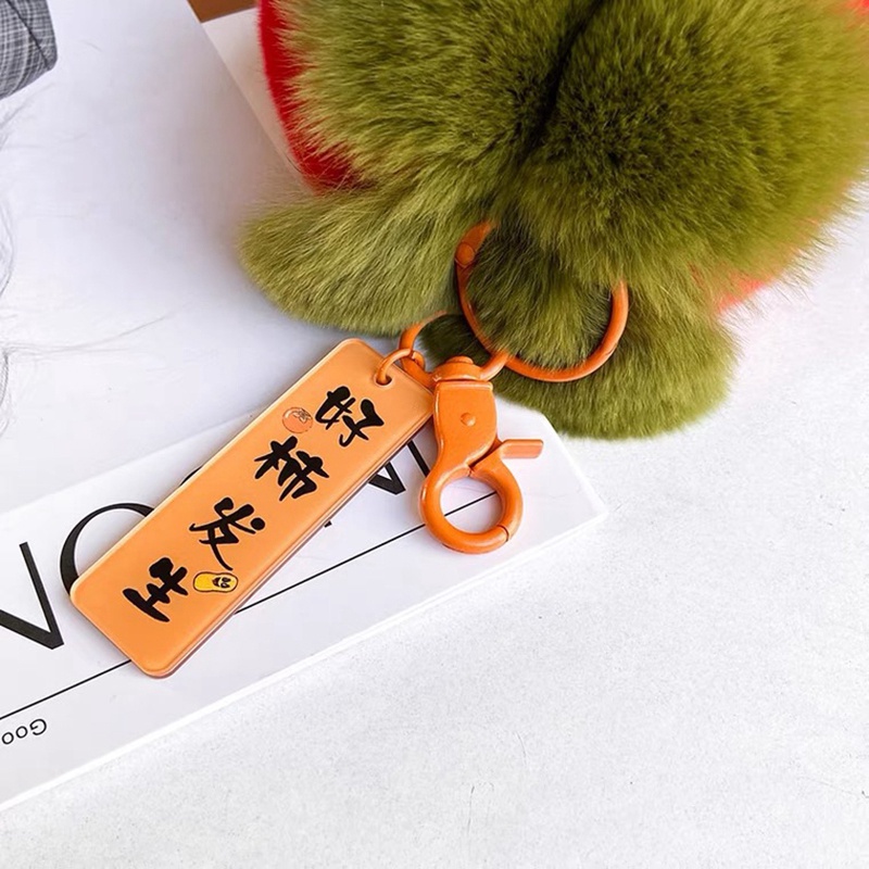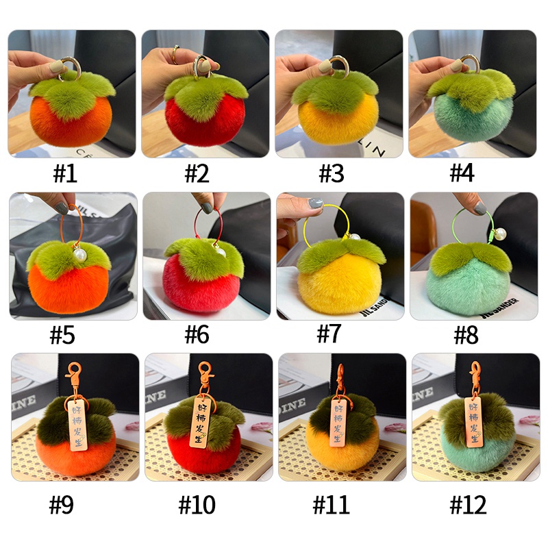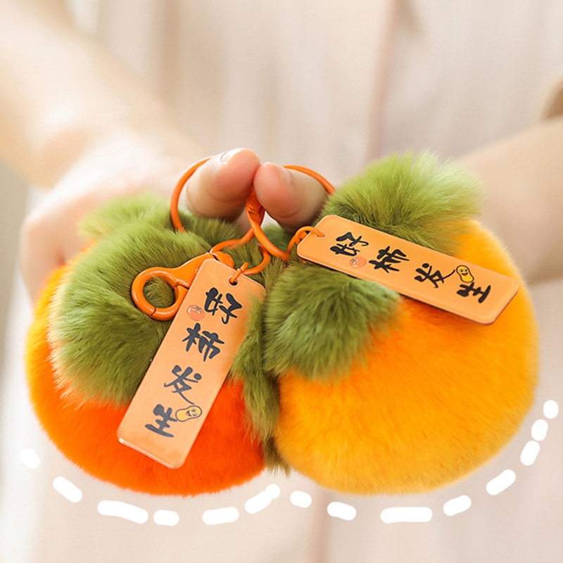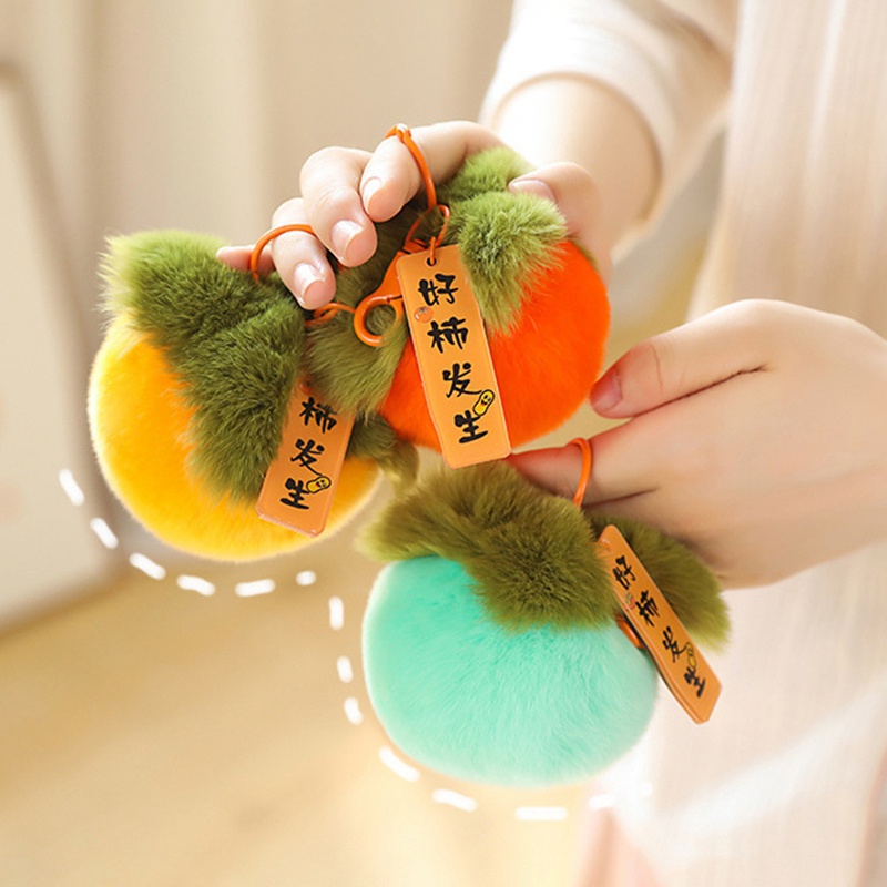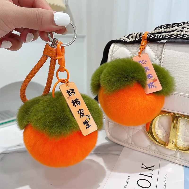 พวงกุญแจลายการ์ตูนรูปผลไม้ลูกพลับ ห้อยเครื่องประดับขนกระต่ายเทียม โชคดีรับตรุษจีนของขวัญ