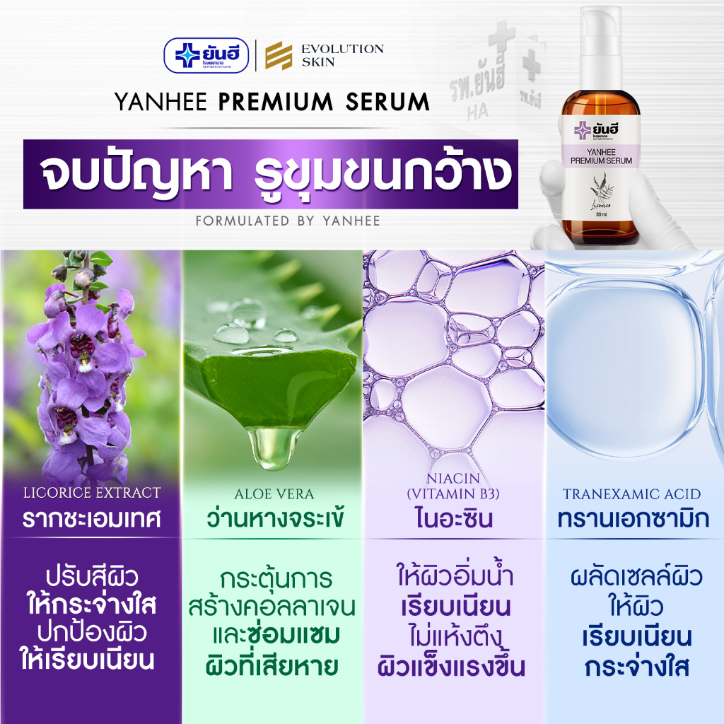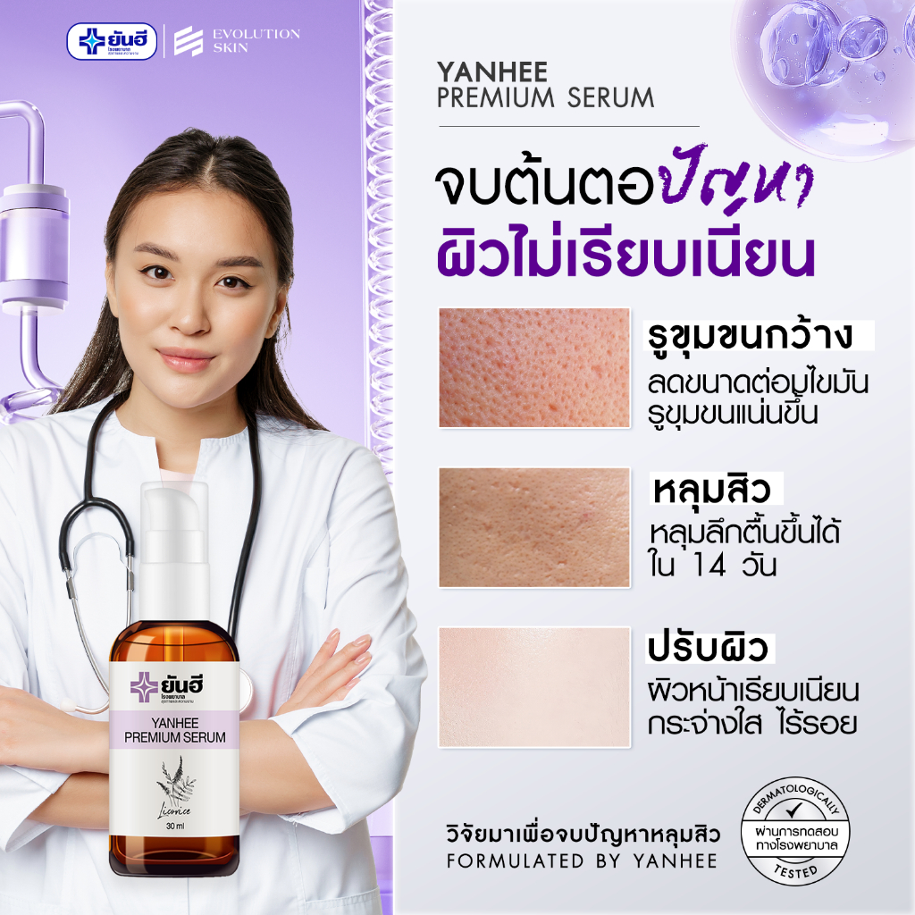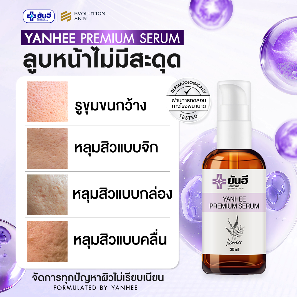 เซรั่มสูตรลิขสิทธิ์เฉพาะของโรงพยาบาลยันฮี เซรั่มระดับนวัตกรรม ที่รวบรวมสารสกัดเข้มข้นแต่อ่อนโยนกับผิว ใช้ได้ดีแม้ผิวแพ้ง่าย ช่วยลดเลือนฝ้า กระ จุดด่างดำ ช่วยดูแลปัญหาสิวทุกชนิดจากต้นเหตุ เผยผิวกระจ่างใส จุดเริ่มต้นของคนรักผิว เป็นเซ