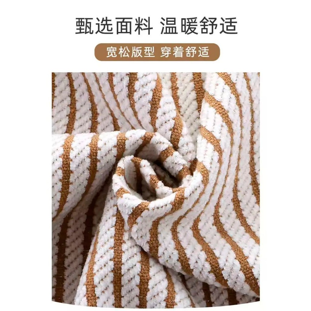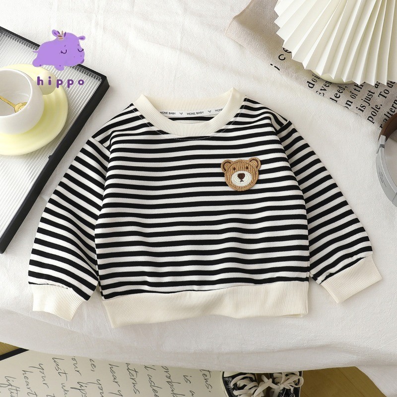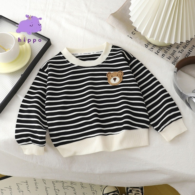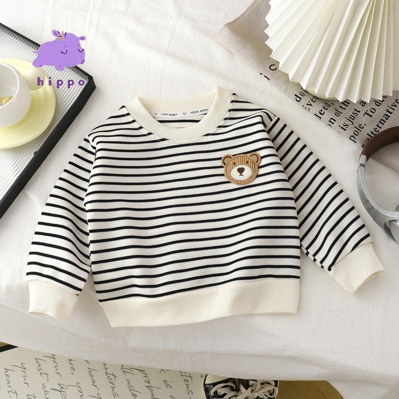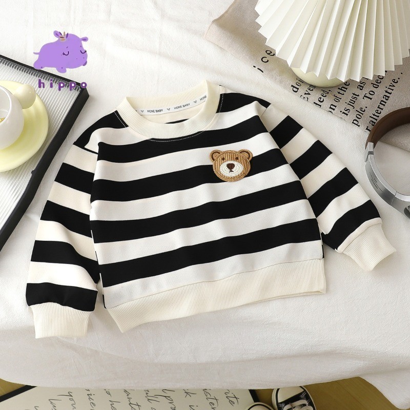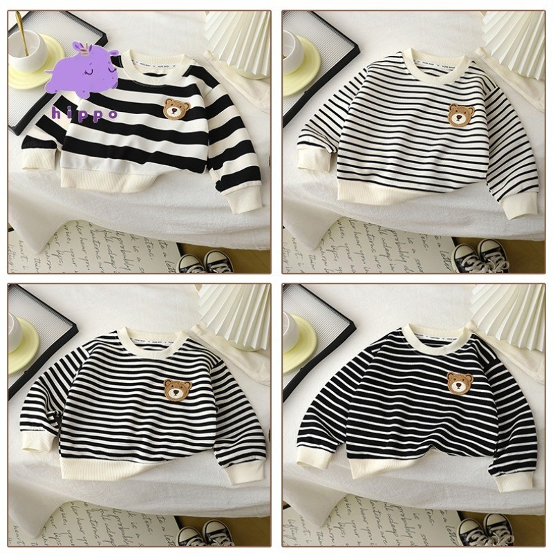 ใหม่ เสื้อสเวตเตอร์ลายทางสําหรับเด็กฤดูใบไม้ร่วง/ฤดูหนาว คอลูกเรือ แขนยาว