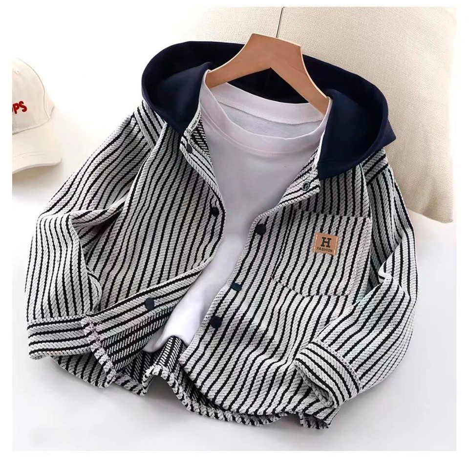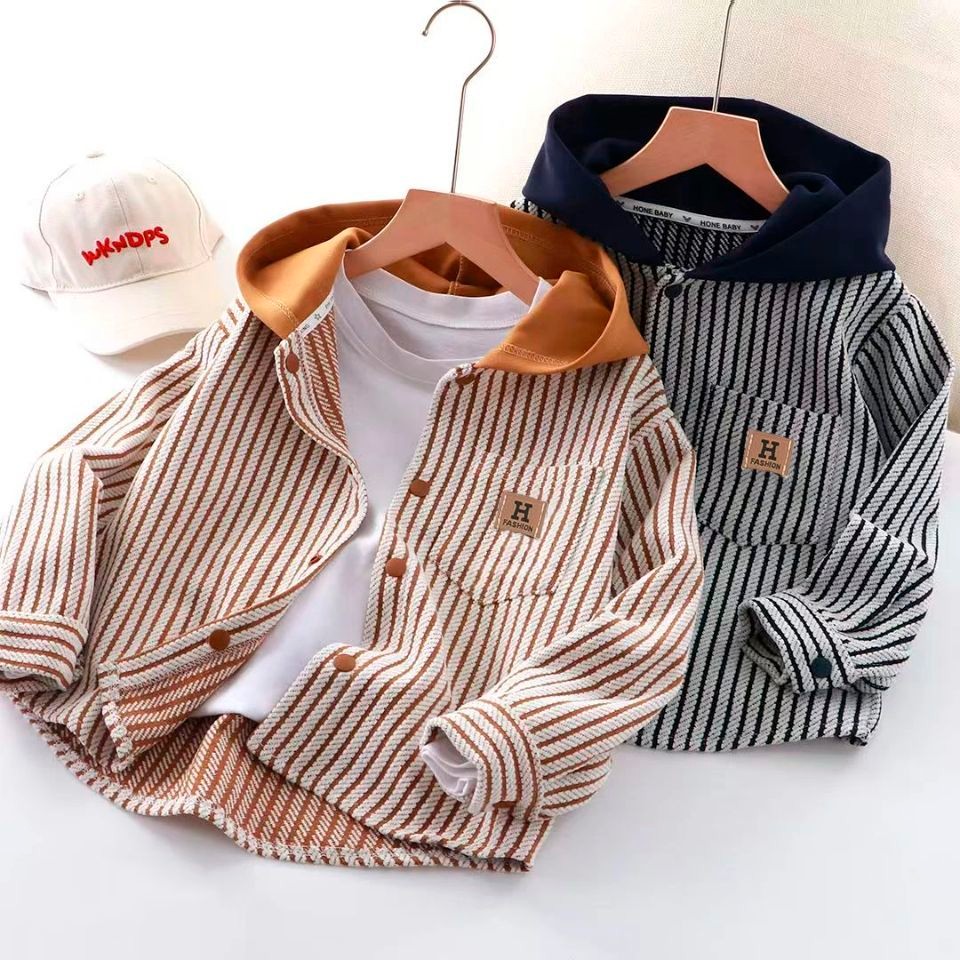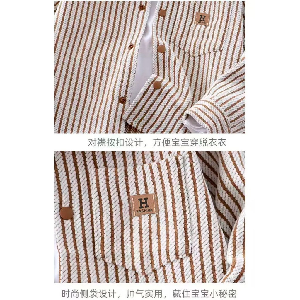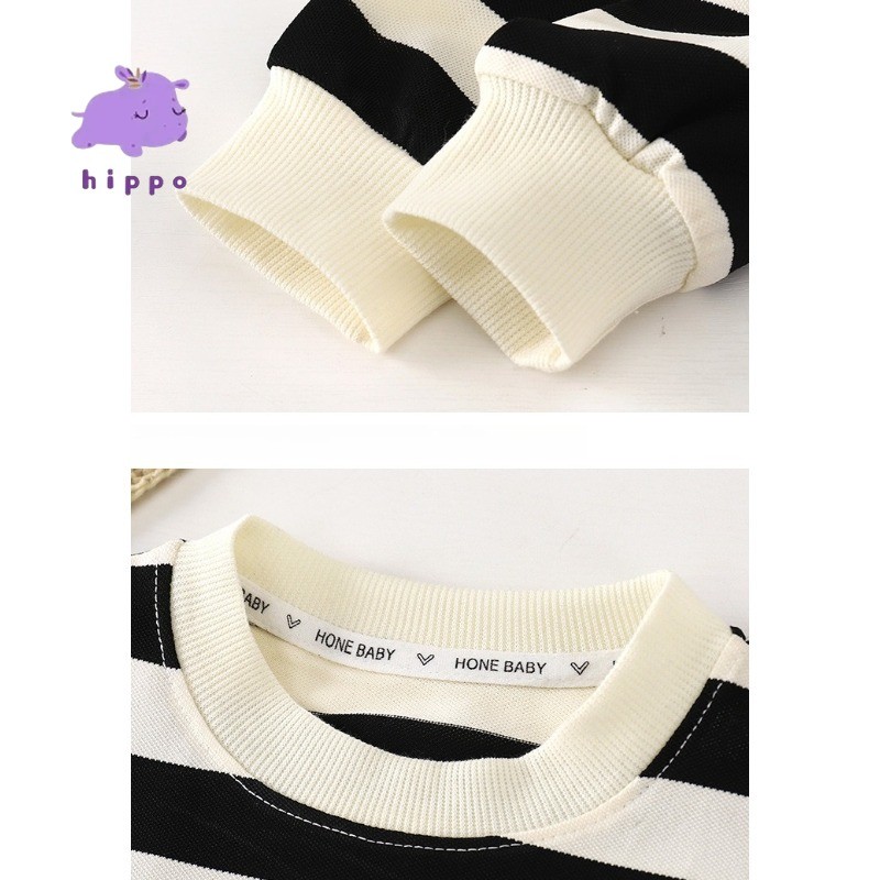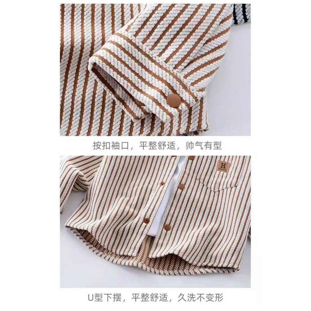 ใหม่ เสื้อสเวตเตอร์ลายทางสําหรับเด็กฤดูใบไม้ร่วง/ฤดูหนาว คอลูกเรือ แขนยาว