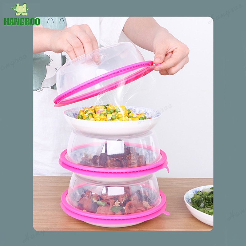 HANGROO I011 ฝาครอบจานชาม ฝาครอบพลาสติก ป้องกันการกระเด็น สําหรับเข้าไมโครเวฟ ฝาครอบอาหาร ฝาครอบสุญญากาศ วางซ้อนกันได้