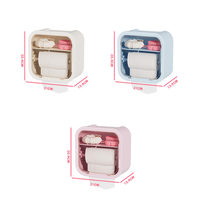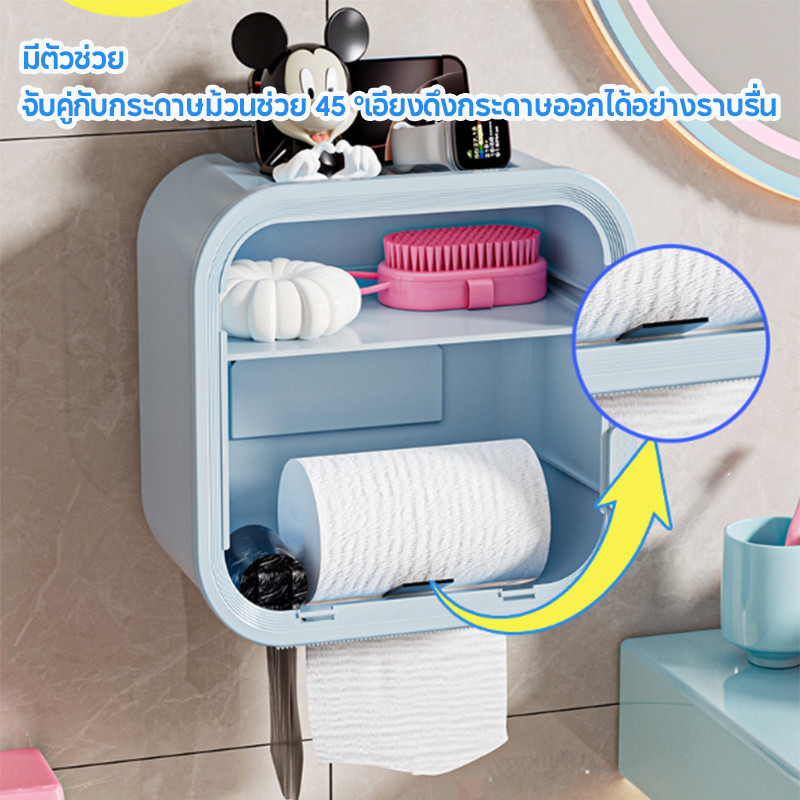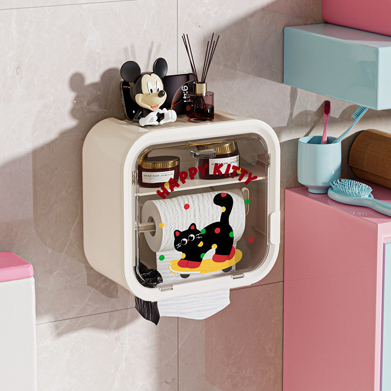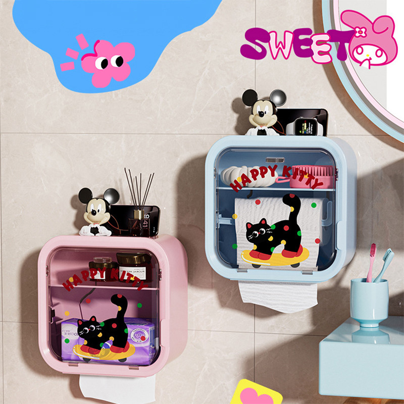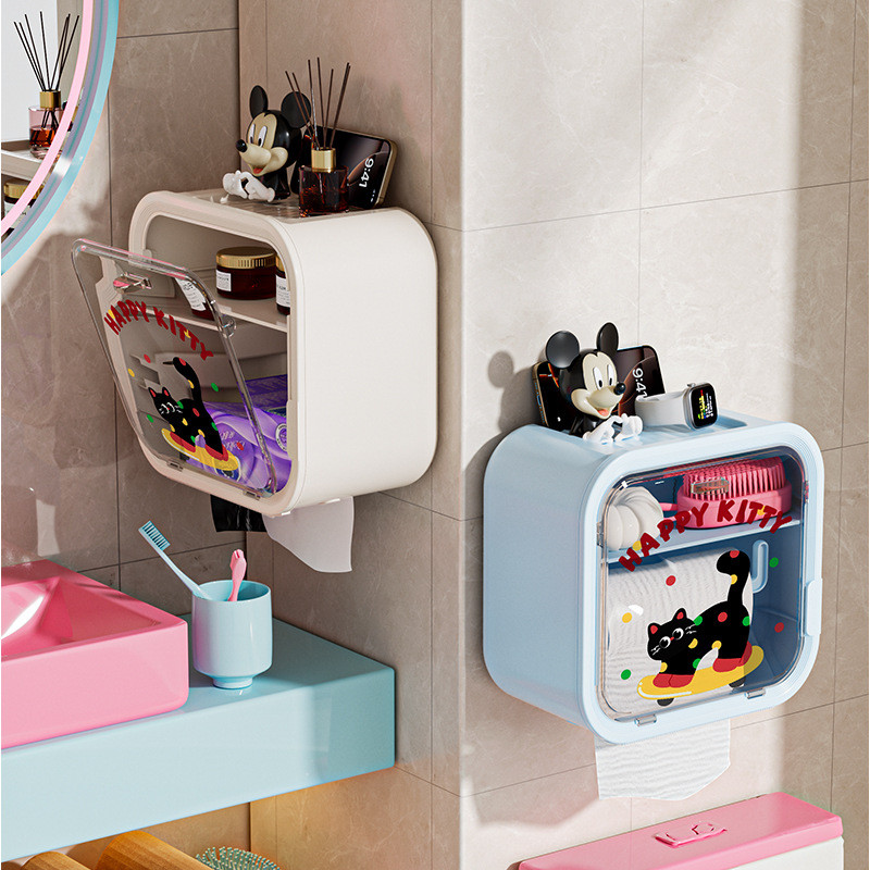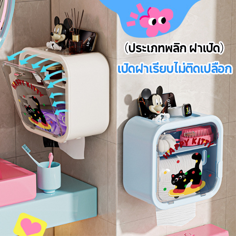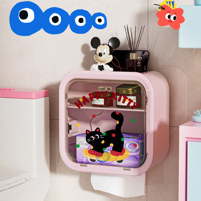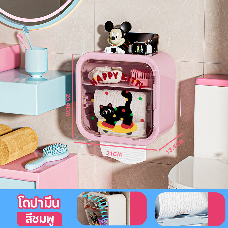 กล่องทิชชู่ห้องน้ำ กล่องใส่ทิชชู่ สีของโดพามีน ลูกแมวน่ารัก ติดตั้งง่าย รุ่นไม่ต้องเจาะ ของตกแต่งบ้าน