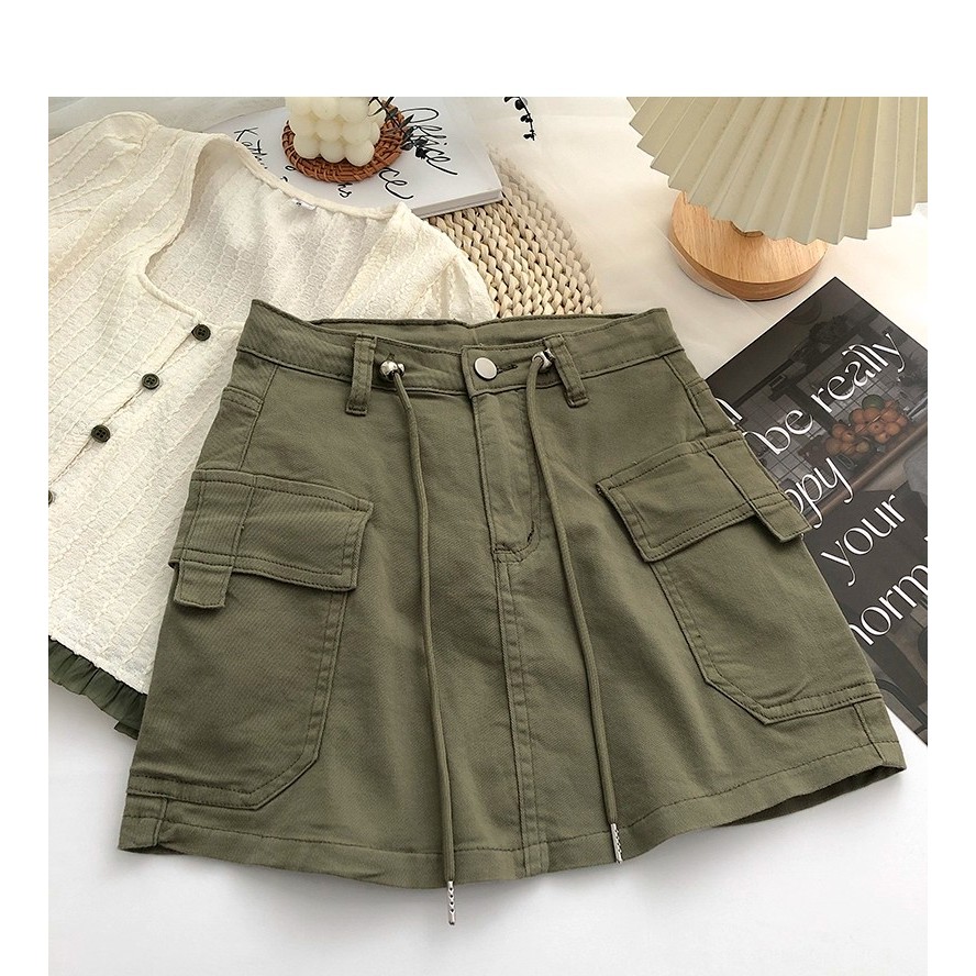 ✨กระโปรงยีนส์เอวสูง✨คาร์โก้ สายเป็นเชือกรูด ทั้งน่ารักและเท่ มีซับในในตัว พร้อมส่งจากไทย ทั้งน่ารักและเท่ Summer
