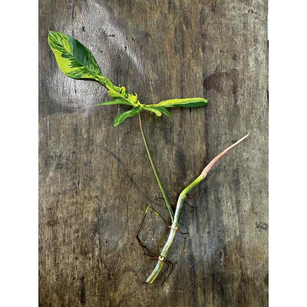 ไม้ข้อปักน้ำ: ก้ามกุ้งด่าง: Philodendron Florida Beauty variegated ส่งแบบห่อตุ้ม