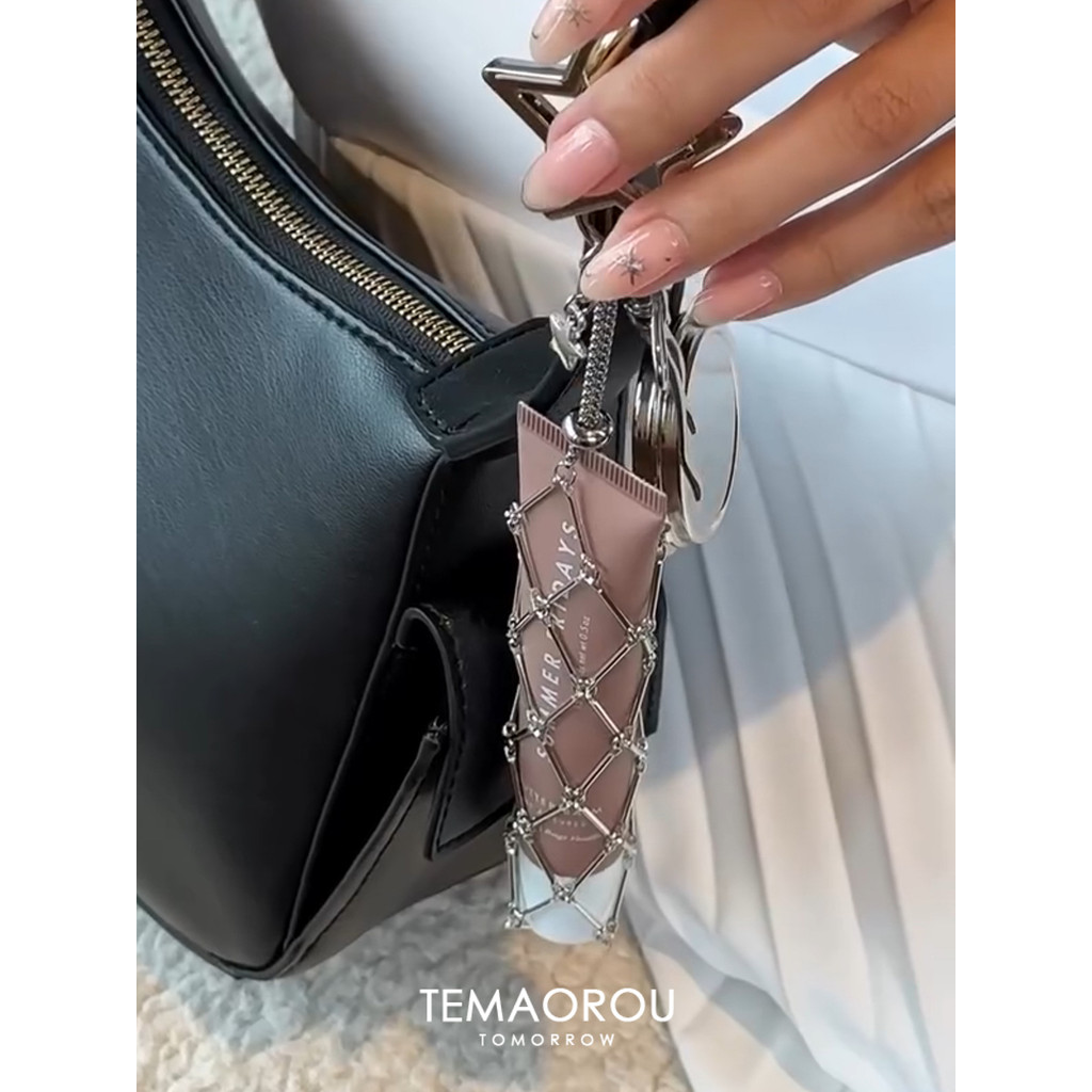กระเป๋าและเครื่องประดับสไตล์เกาหลีหรูกึ่งหวาน มีโซ่แขวนสำหรับการพกพาได้อย่างสะดวก และมีลักษณะเฉพาะตัว