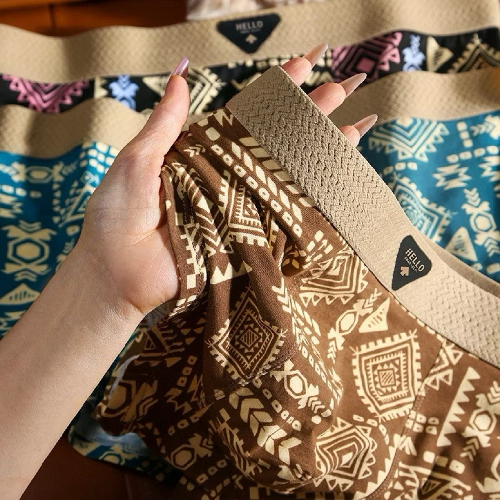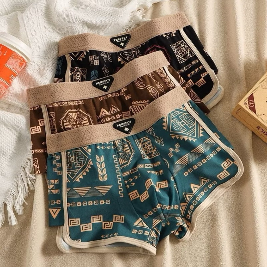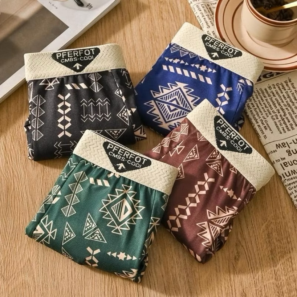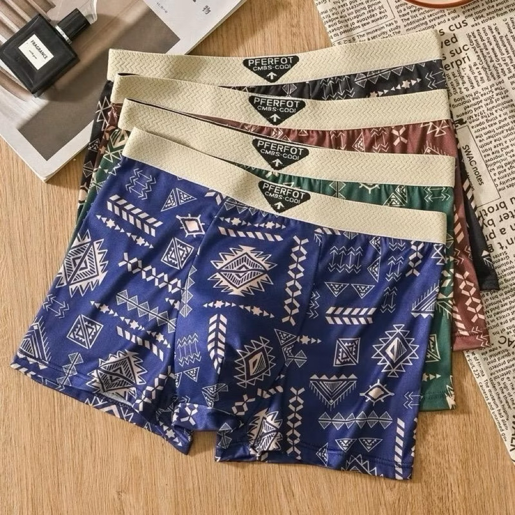 ?(แพ็ค5/10/20ตัว)กางเกงในชาย บ็อกเซอร์ ผ้าเย็นสบาย แบบใหม่ลายวินเทจ เอวกลางแผ่นซับคอตตอน100%ระบายอากาศดี