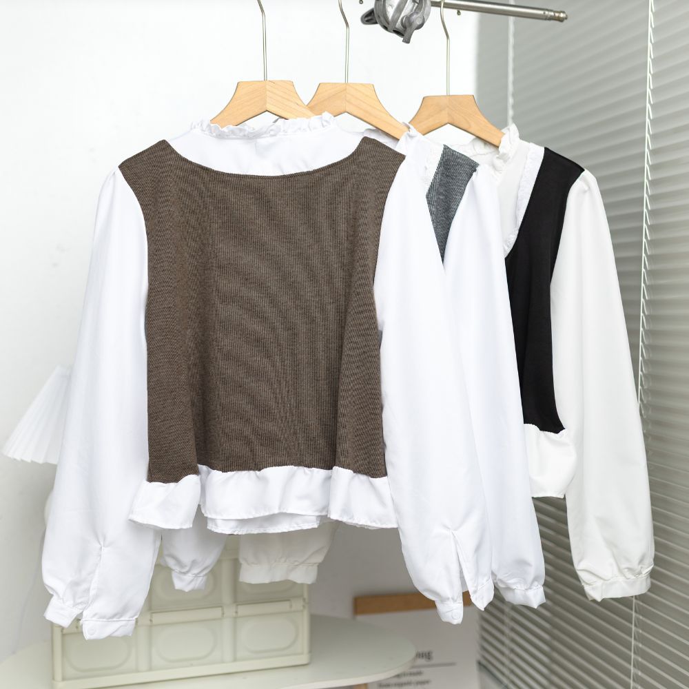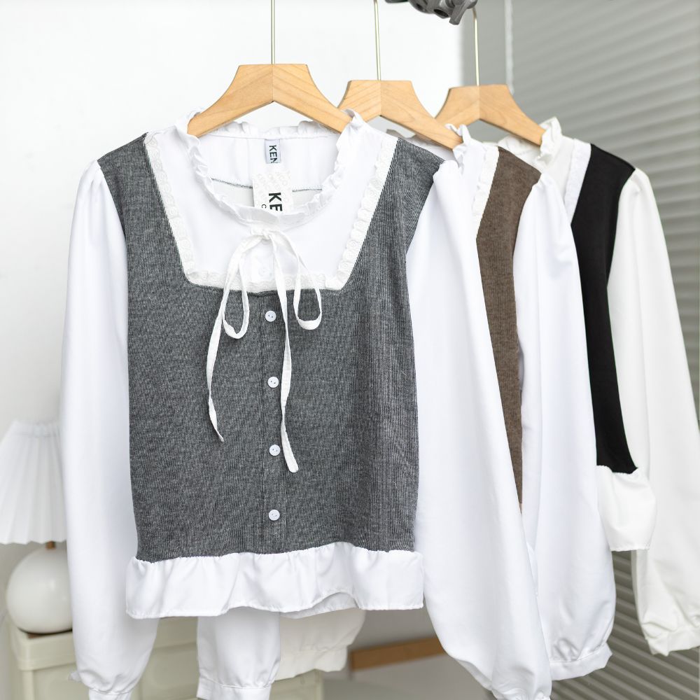 LAM ANH TRAN MA3225 เสื้อเชิ้ตคอปกแขนยาวแต่งลูกไม้