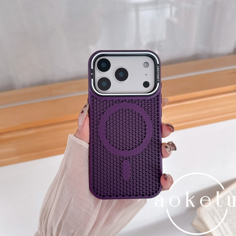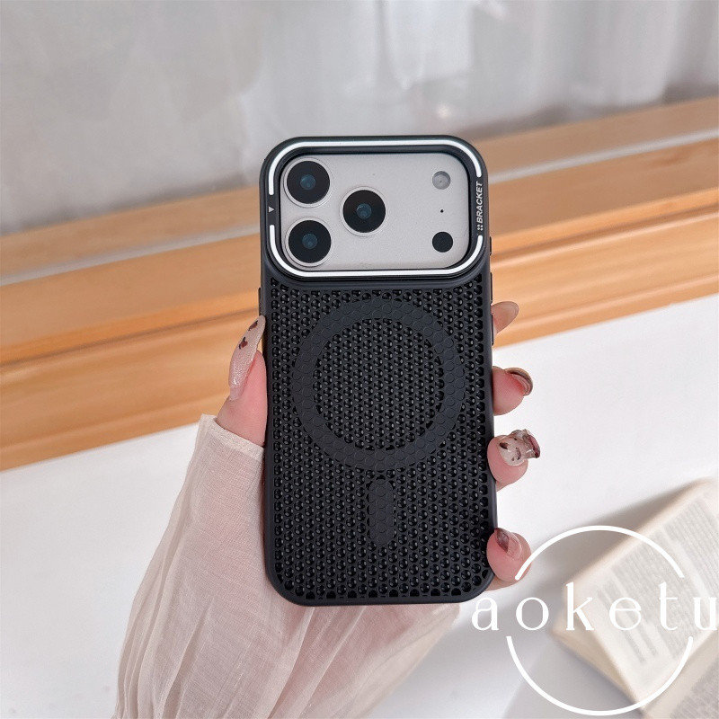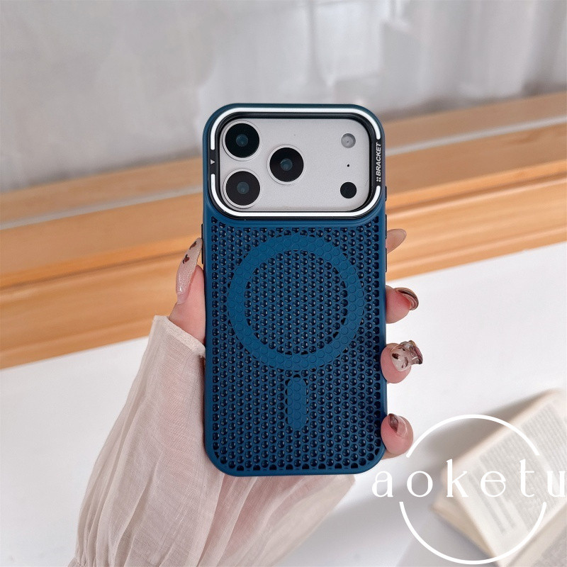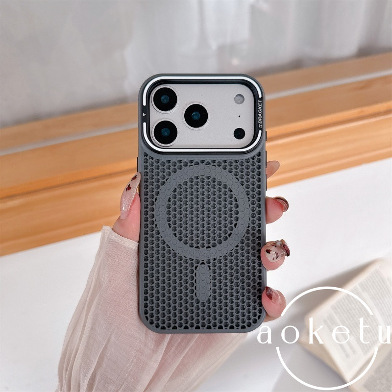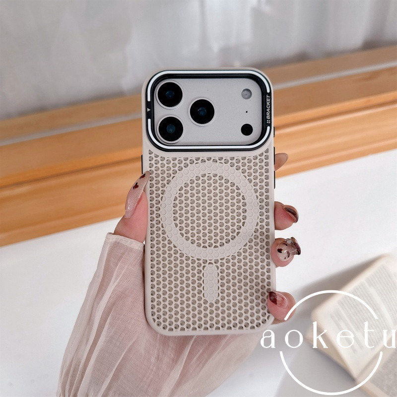 แม่เหล็กรังผึ้งกระจายความร้อนเหมาะสําหรับเคสโทรศัพท์ ไอโฟน 17 โปรแม็กซ์,ที่วางกรอบ แอปเปิล 16,15มือโปร ใหม่เคลือบสีส้มป้องกันการวางฝา