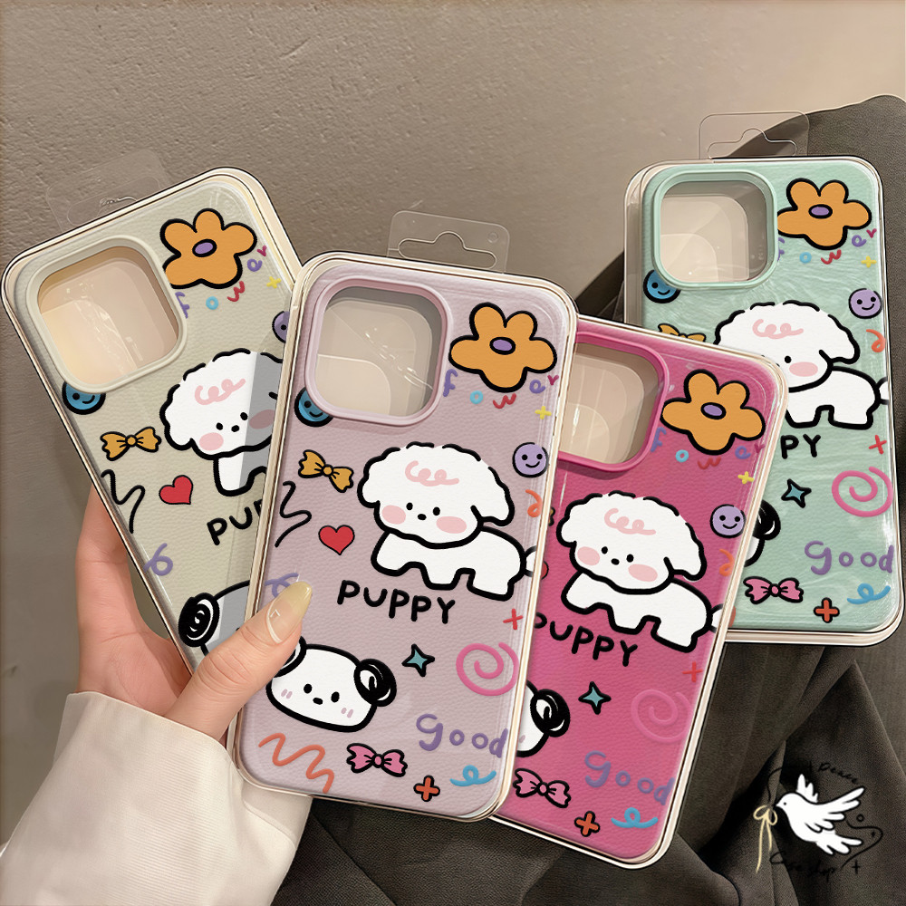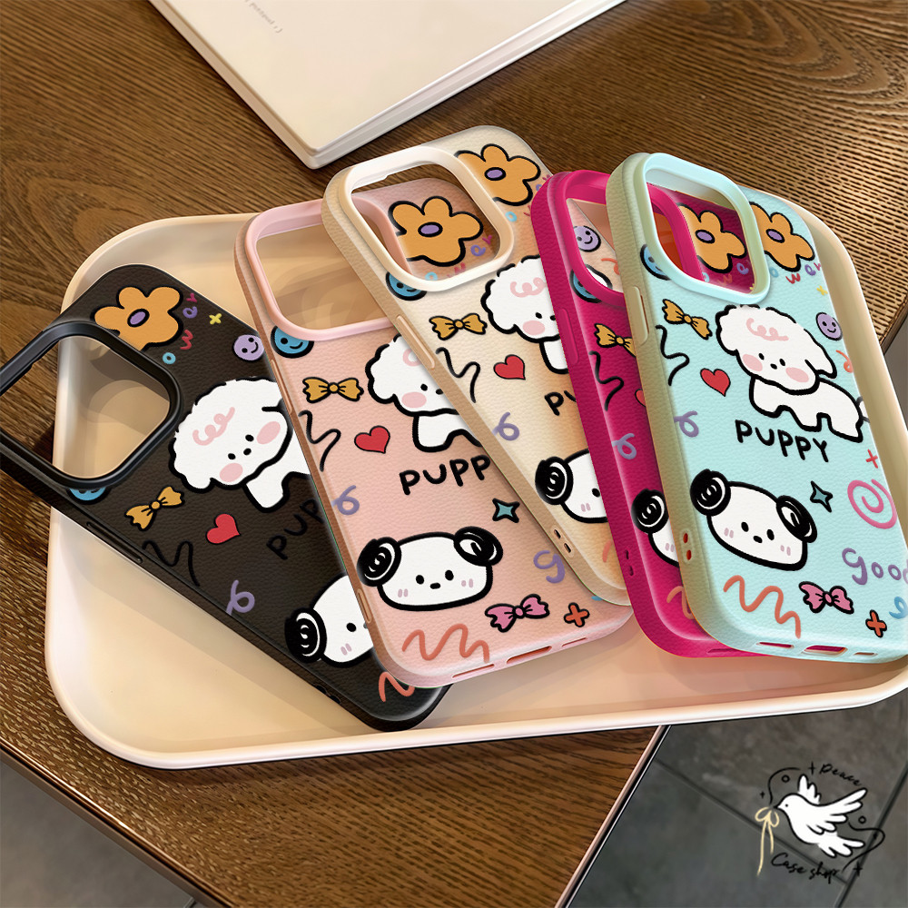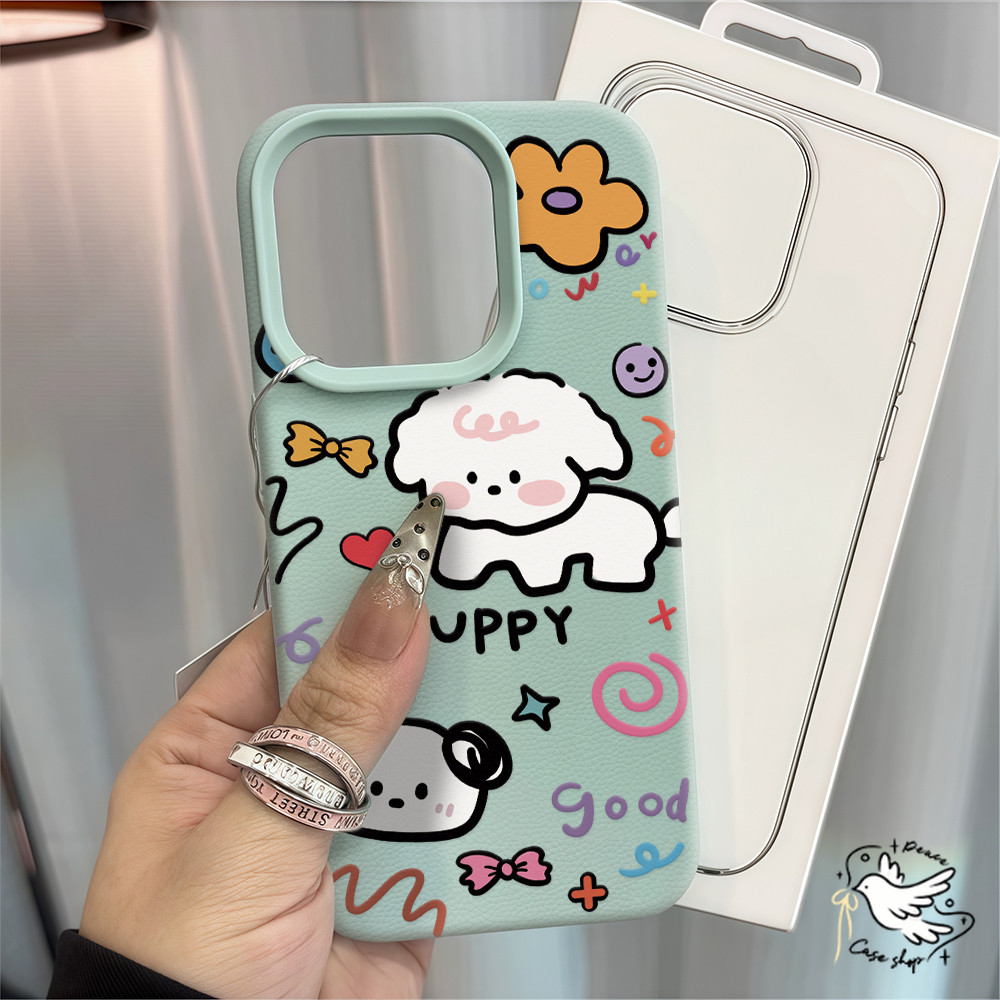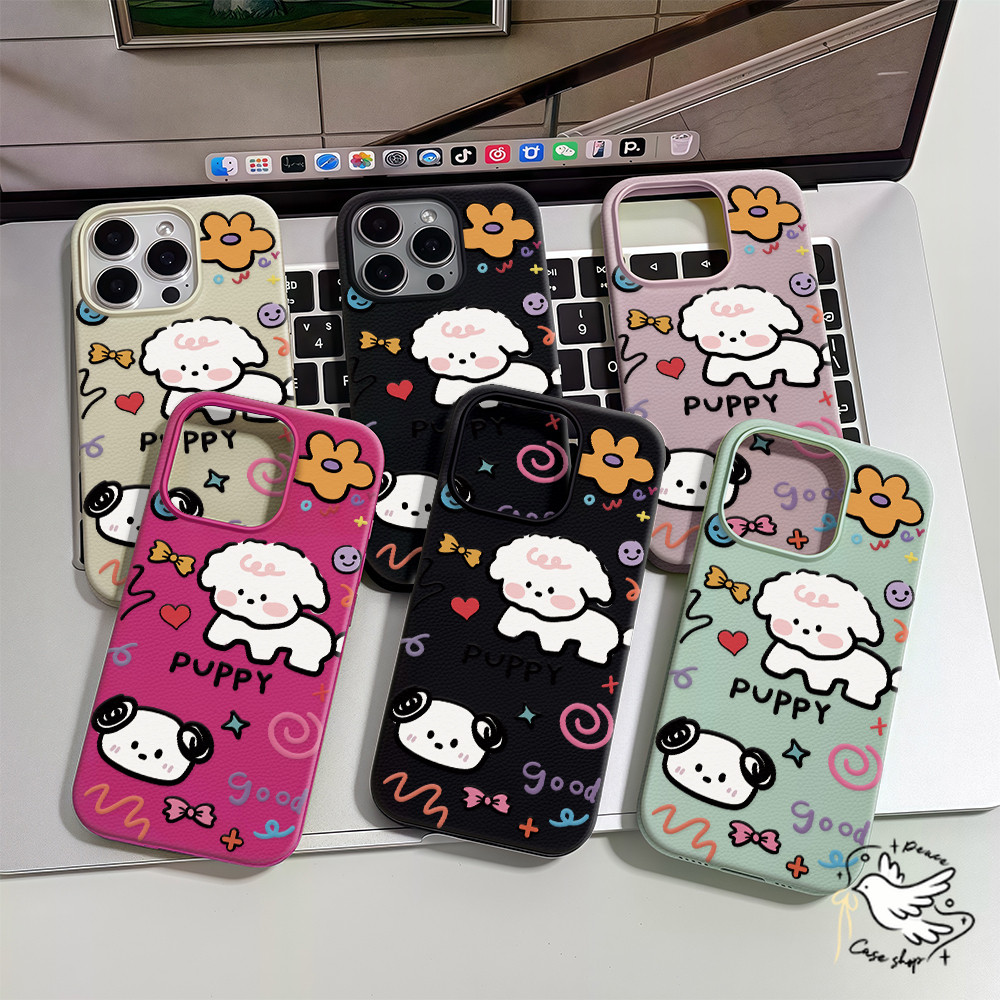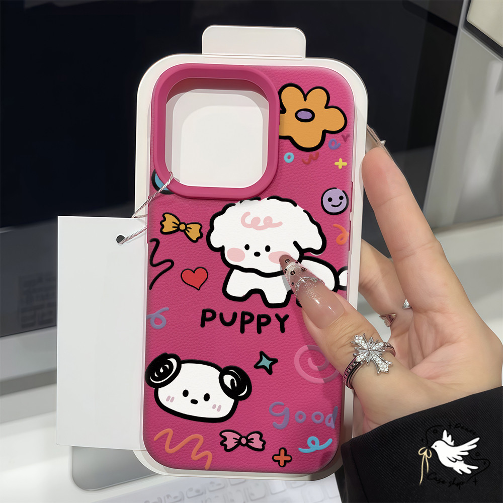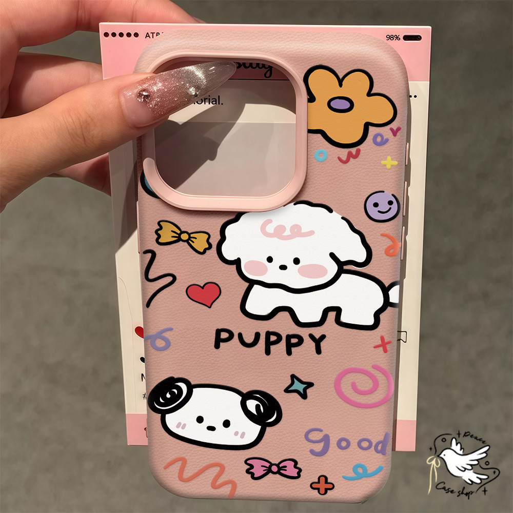 COD-ในไทย?ภาพวาดเส้นสุนัขตัวเล็ก For iPhone 11 12 13 14 15 16 17 Pro Max XS XR เคส เคสโทรศัพท์พื้นผิวลิ้นจี่ กันกระแทก