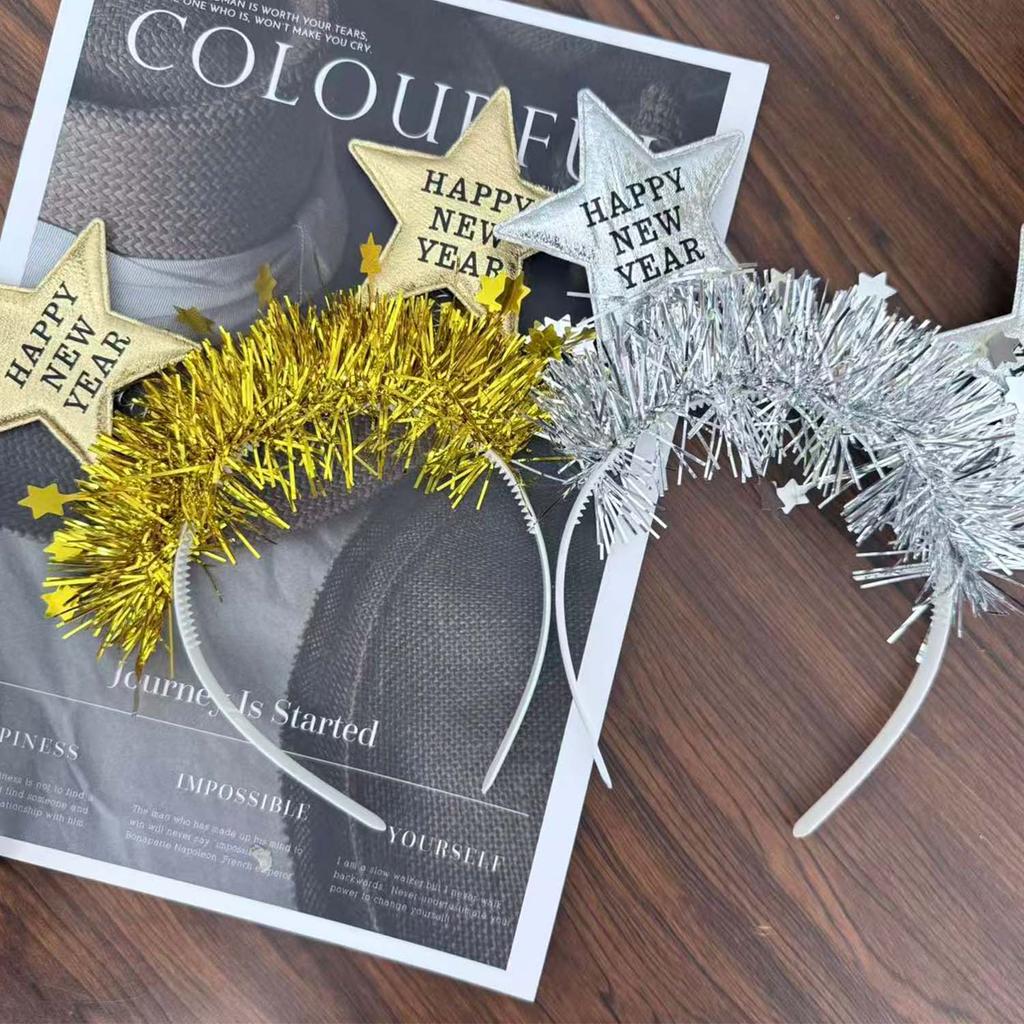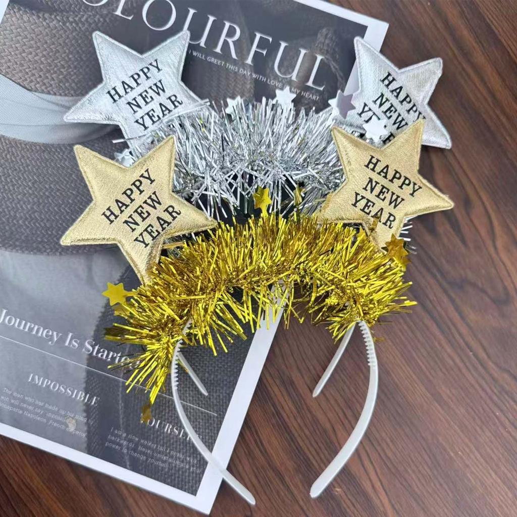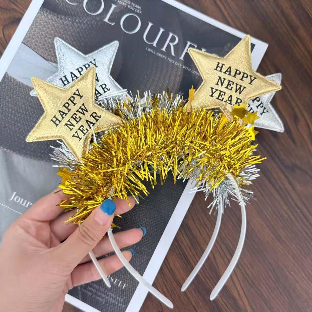 ที่คาดผมสำหรับงานปาร์ตี้ ยืดหยุ่นได้ สีทองและสีเงินแวววาว พร้อมดีไซน์ HAPPY NEW YEAR