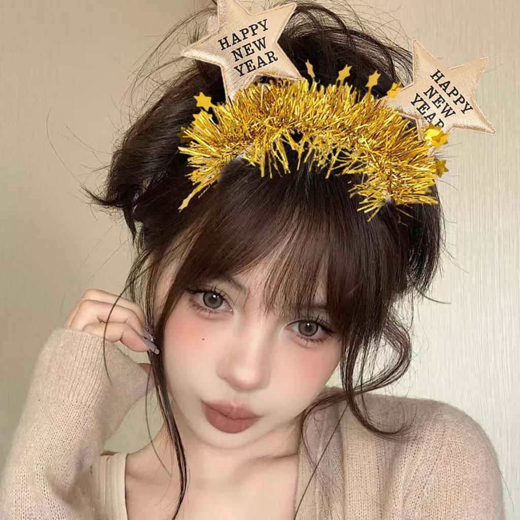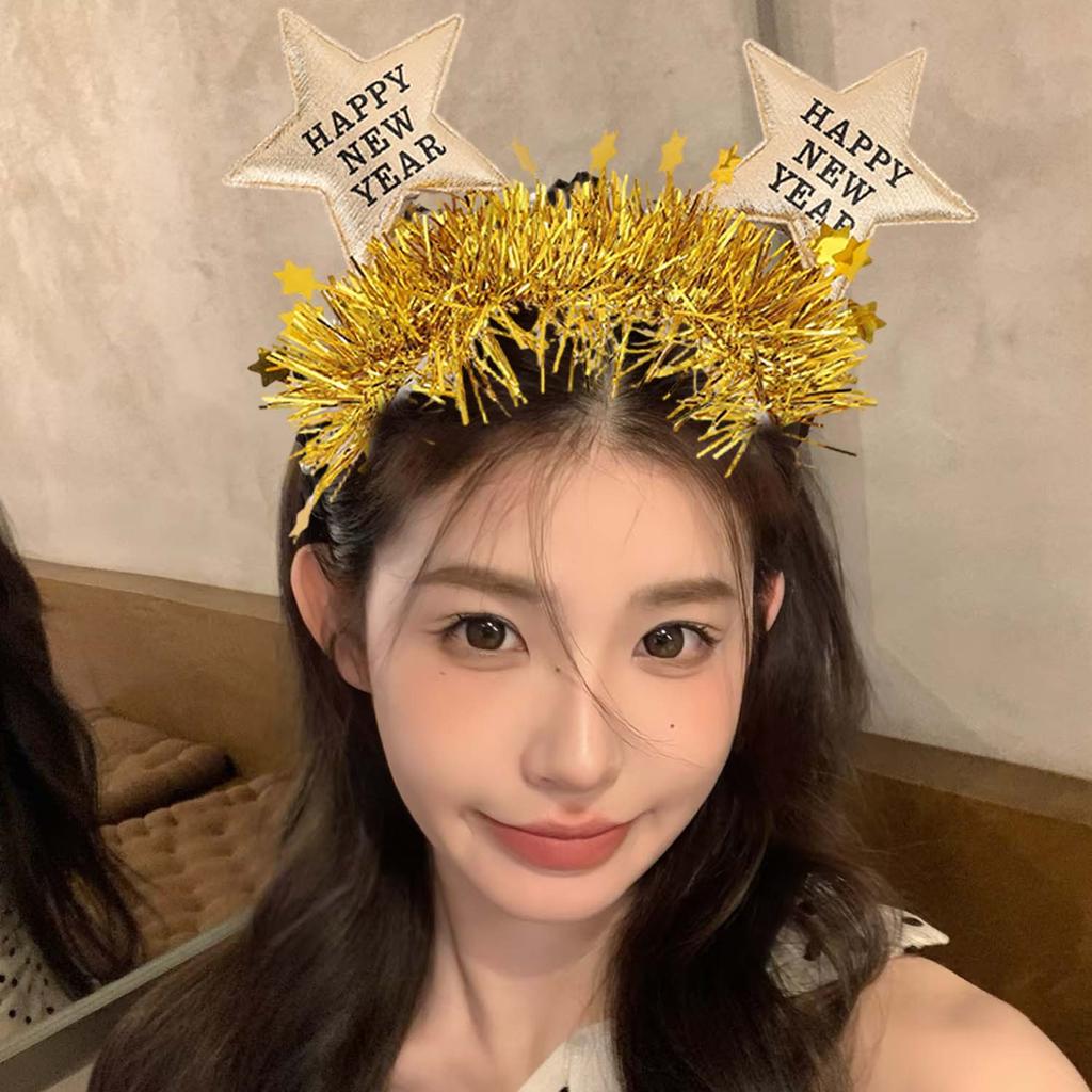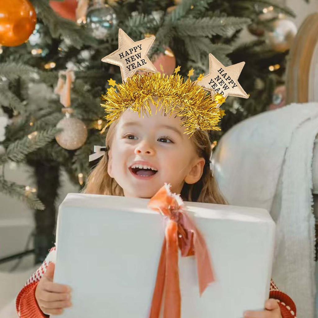 ที่คาดผมสำหรับงานปาร์ตี้ ยืดหยุ่นได้ สีทองและสีเงินแวววาว พร้อมดีไซน์ HAPPY NEW YEAR