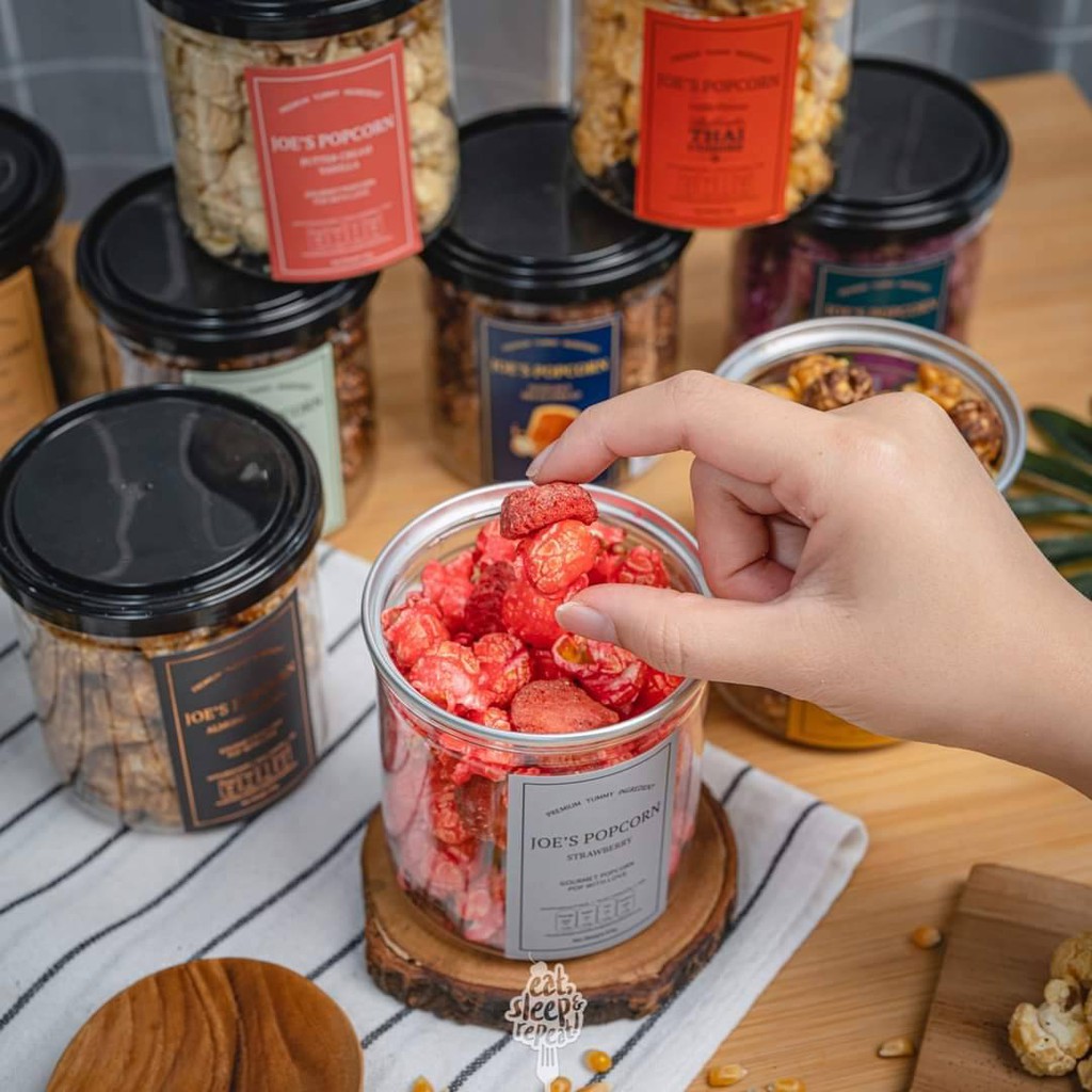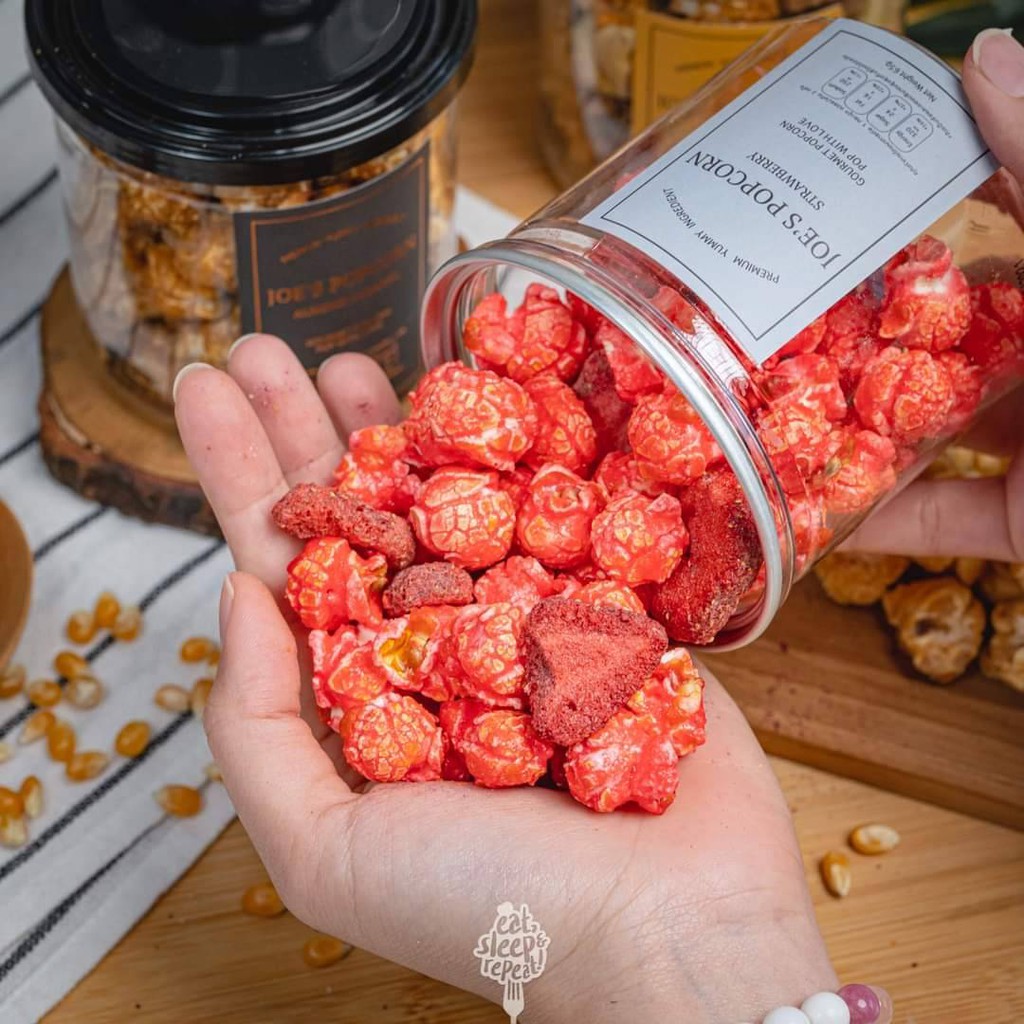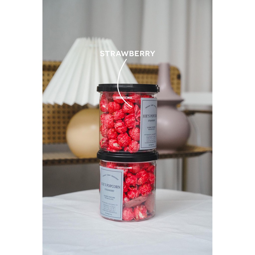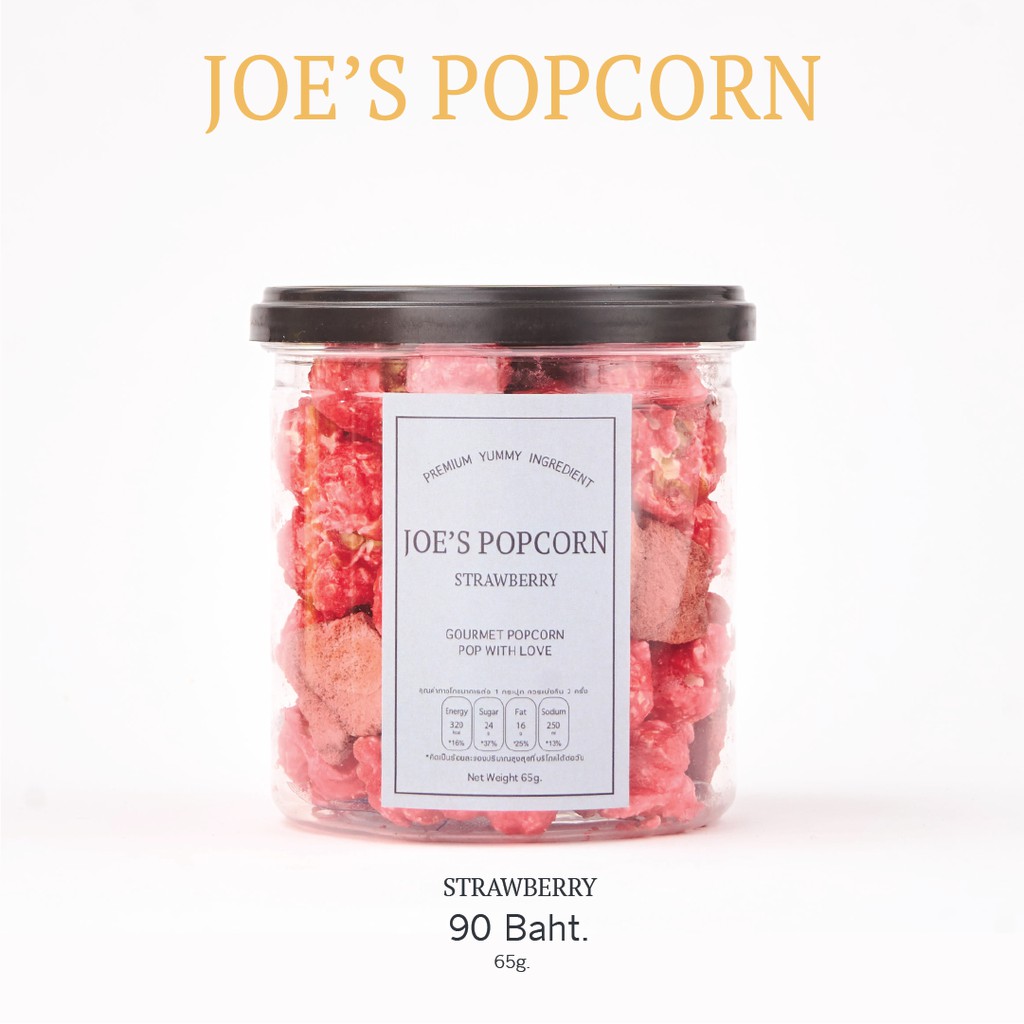 โจป๊อปคอร์น Joe’s Popcorn ข้าวโพดอบกรอบ แบบกระปุก 65 กรัม รสสตรอว์เบอร์รี่