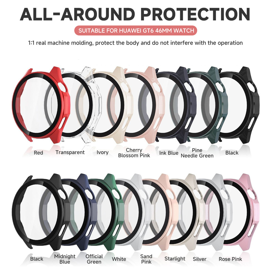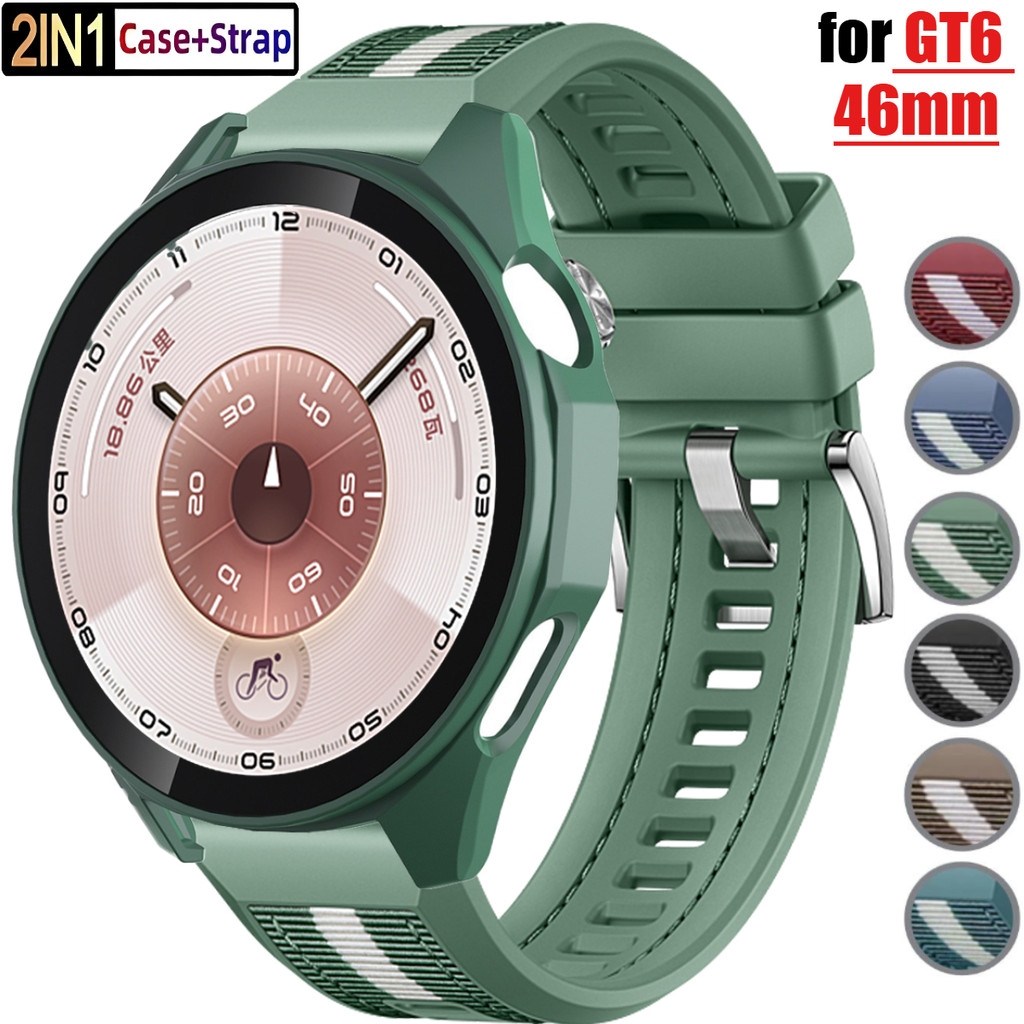 กรณีพีซีแบบแข็ง + สายรัดสําหรับ Huawei GT6 46 มม.ซิลิโคนไนลอนปรับสาน Wirstband ฝาครอบป้องกันสําหรับ Huawei GT6 46 มม.