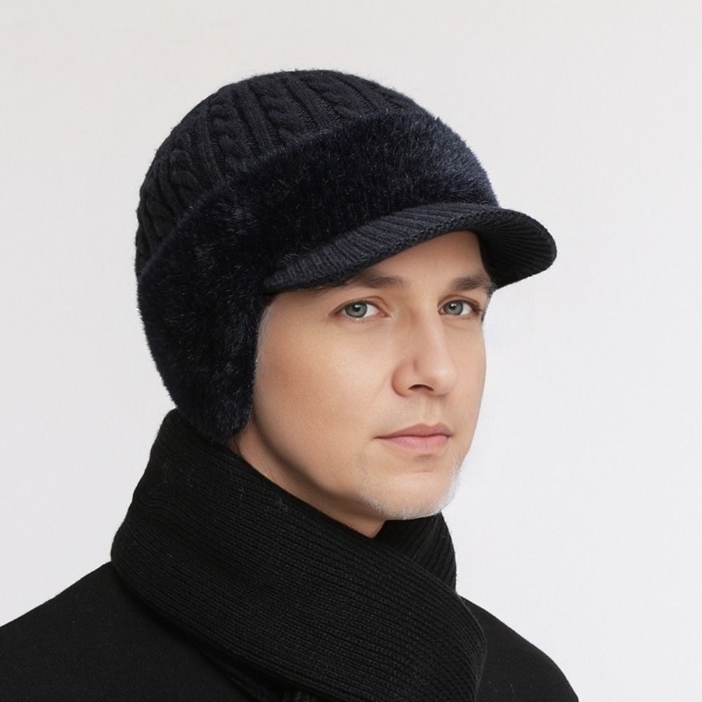 MIOSHOP หมวกถักกันลมสำหรับฤดูหนาว ออกแบบมาเพื่อมอบความสะดวกสบายและอุ่นด้วย flap ป้องกันหู เหมาะสำหรับพ่อและคุณปู่