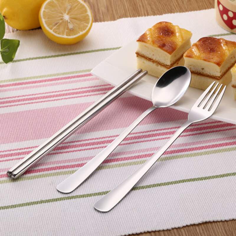 ชุดช้อนส้อมตะเกียบสแตนเลส ชุดช้อนส้อมตะเกียบขนมหวาน พร้อมกล่อง