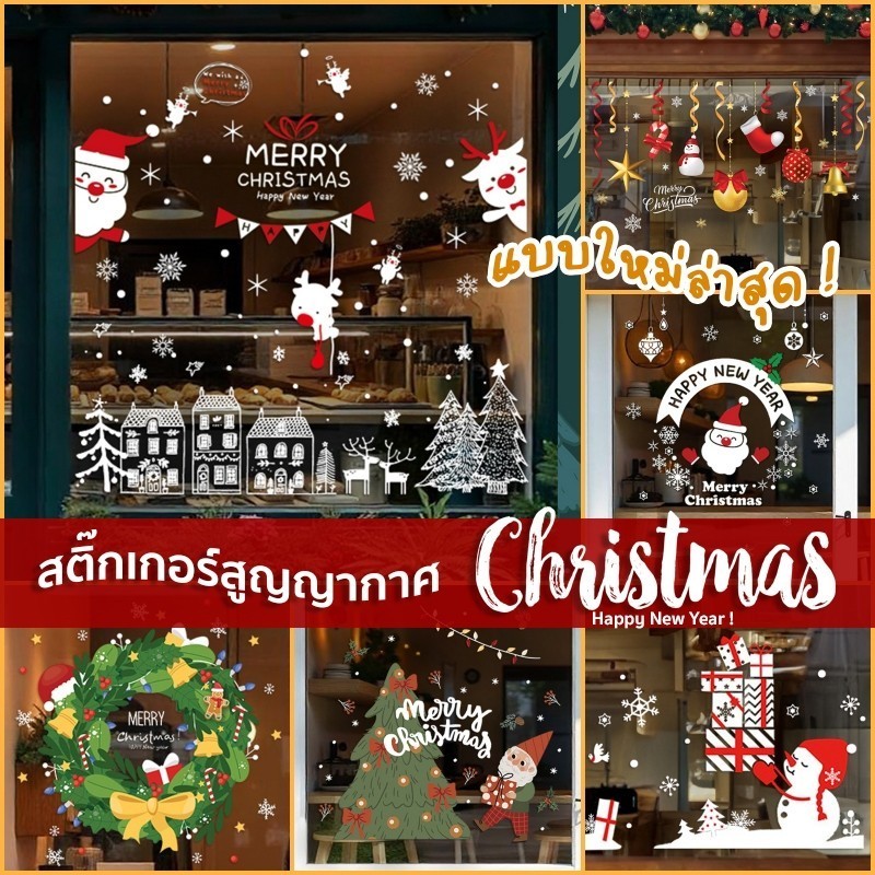 【จัดส่งจากกรุงเทพ】 อัพเดทปี2026 สติกเกอร์ติดกระจก ตกแต่งวันคริสต์มาส สติกเกอร์คริสต์มาส สำหรับเทศกาล ปีใหม่ ปี2567