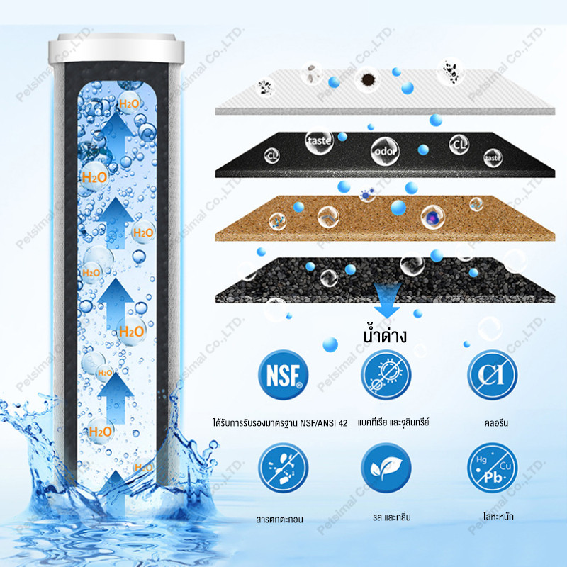 แผ่นกรอง 3 ชั้น สามารถกรองสนิม ตะกอน คลอรีน แบคทีเรีย สี