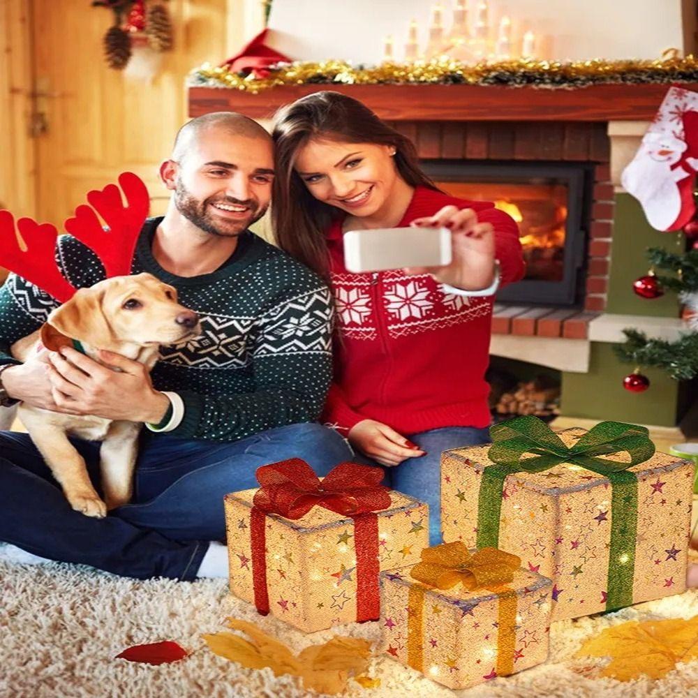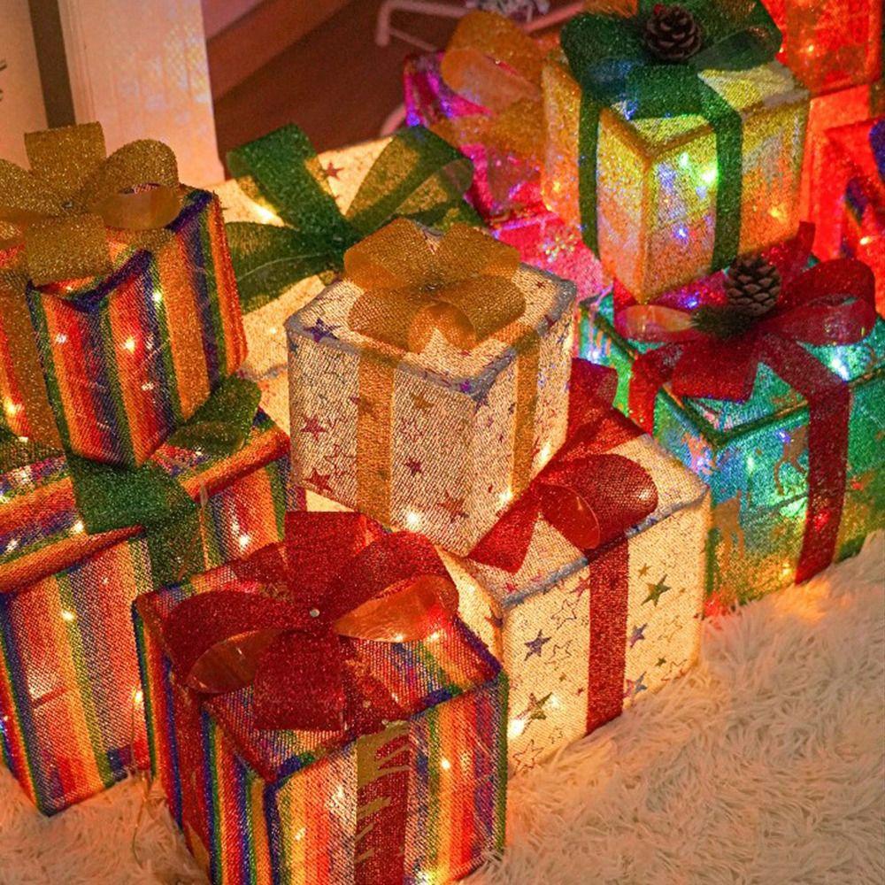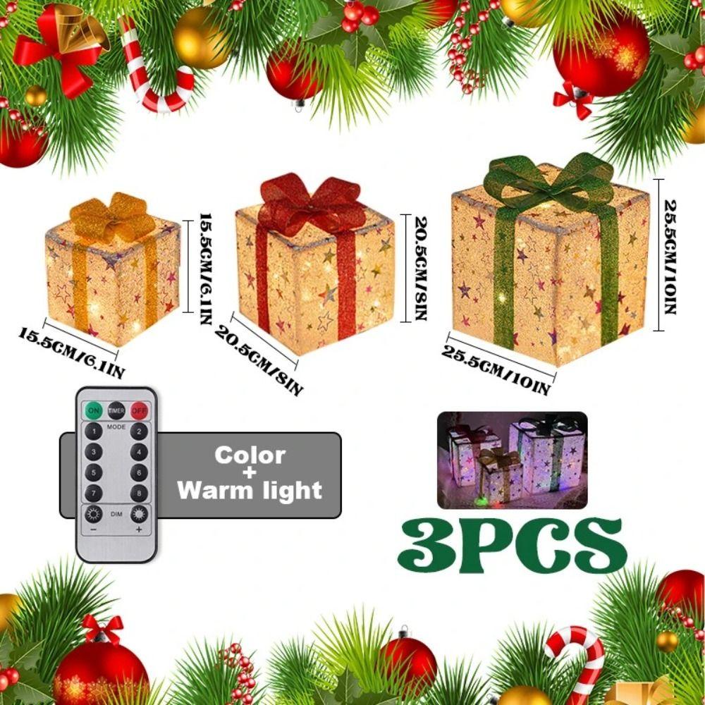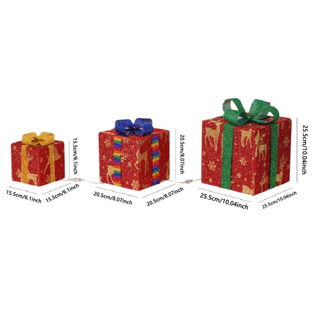 AQUATECH 3 ชิ้นคริสต์มาสเรืองแสงตกแต่ง, 8 โหมด Elk Luminous คริสต์มาสของขวัญกล่อง, Led เครื่องประดับรีโมทคอนโทรล Lighted Up ตกแต่งลานกลางแจ้ง Christams ต้นไม้ตกแต่ง