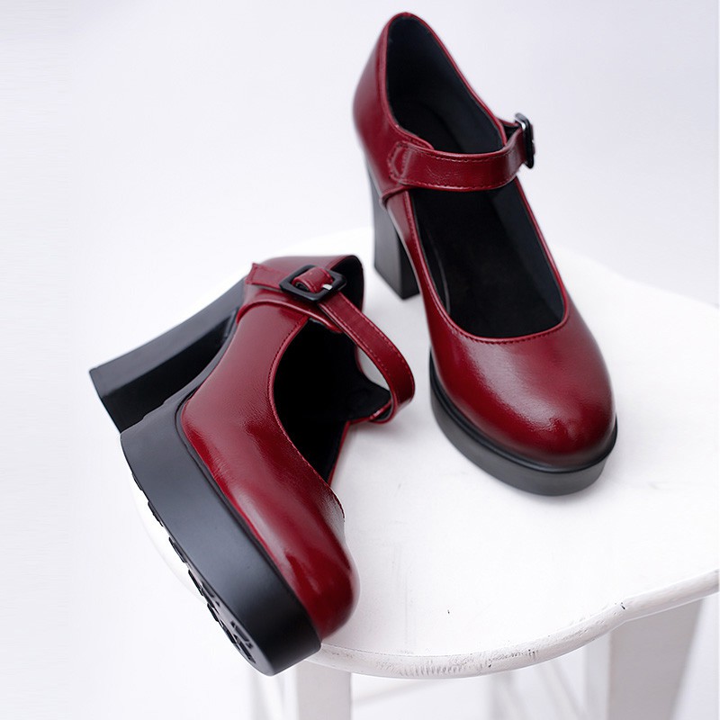 รองเท้าหัวเข็มขัดแบบคลาสสิก กันน้ํา ส้นหนาและส้นหยาบ