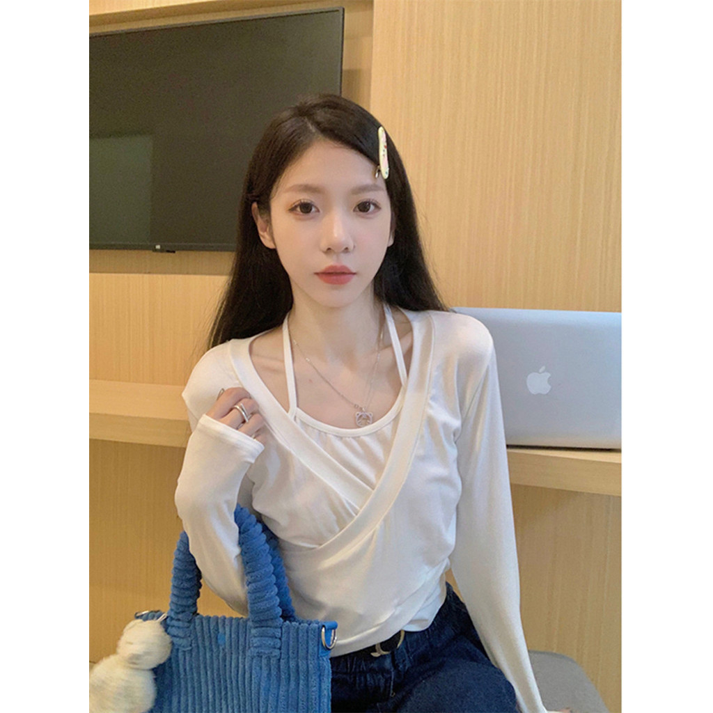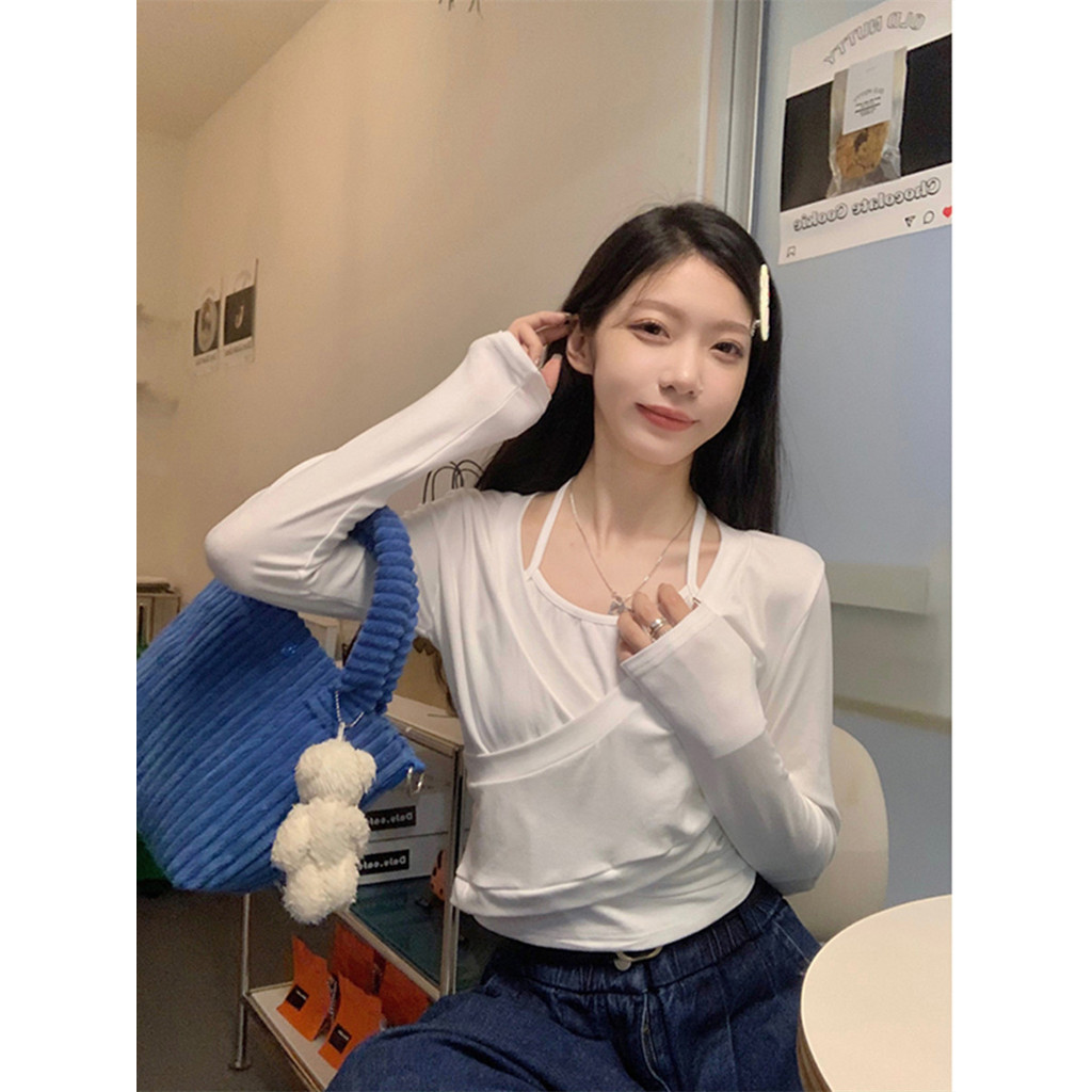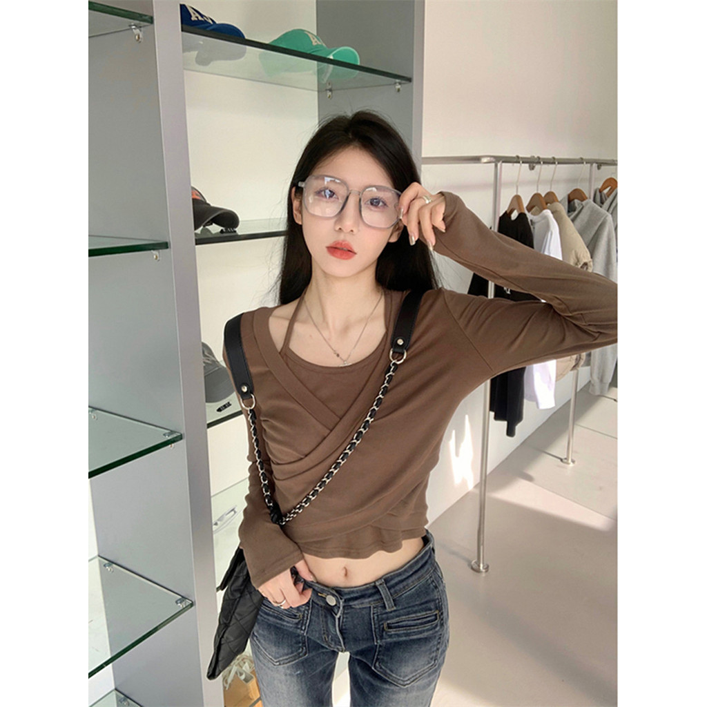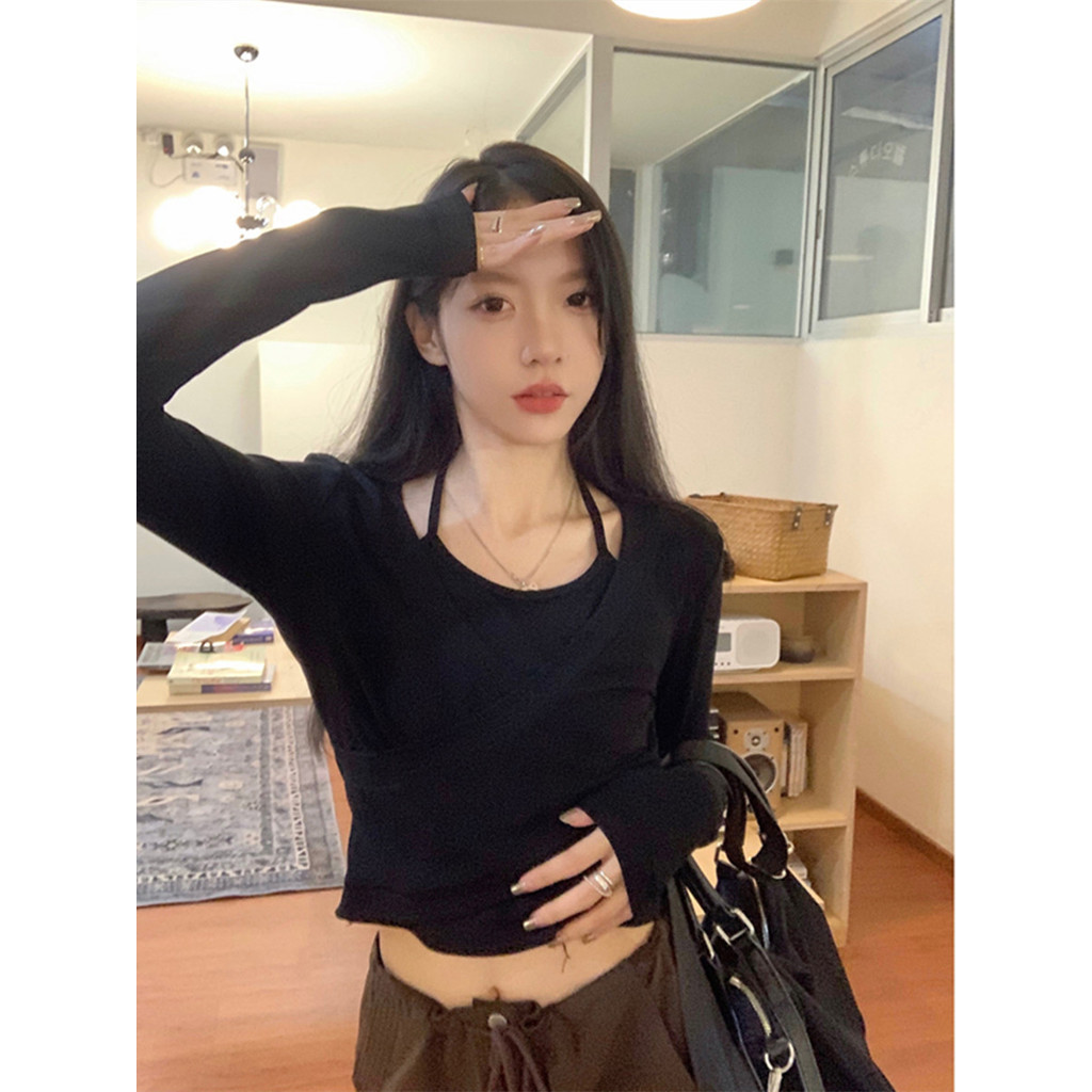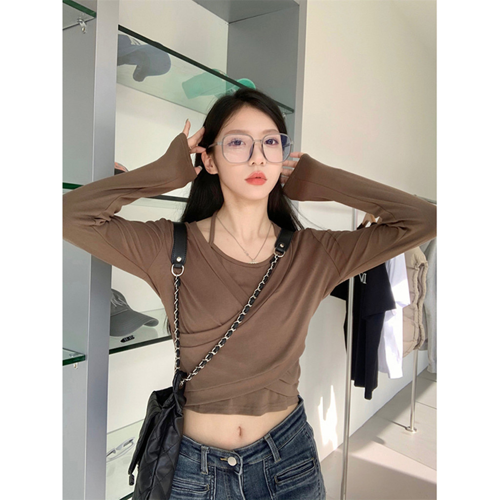 เสื้อแขนยาวสไตล์เกาหลีสำหรับผู้หญิง เหมาะสำหรับฤดูใบไม้ร่วง ออกแบบมาในทรงสั้นเพื่อความสะดวกสบาย