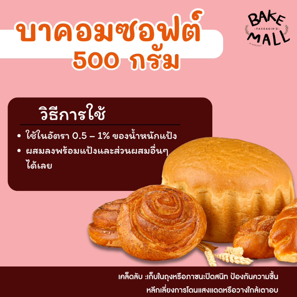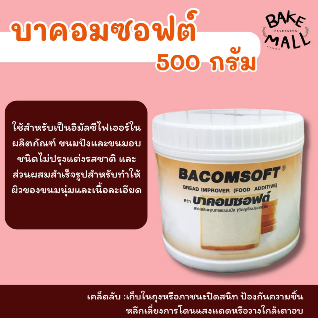 บาคอมซอฟต์ สารเสริมคุณภาพขนมปัง ขนาด 500 กรัม BACOMSOFE Bread Improver (Food Additive)