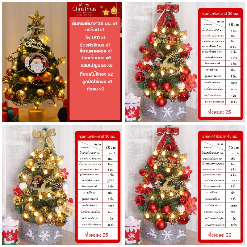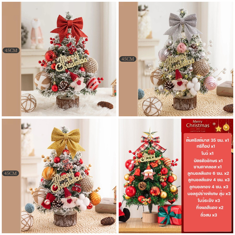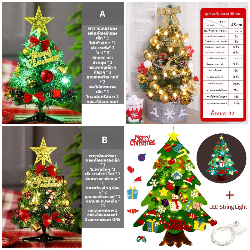 COD พร้อมส่งจากไทย 45cm ต้นคริสต์มาสบนเดสก์ท็อป ตกแต่งคริสต์มาส ตกแต่งบ้าน พร้อมไฟLED ต้นคริสต์มาส