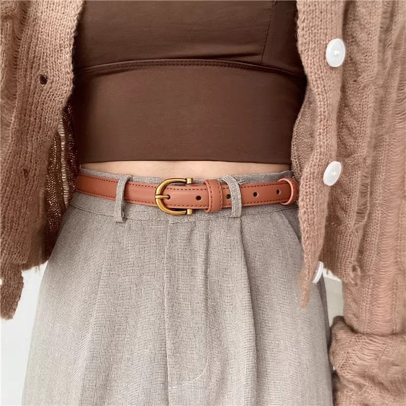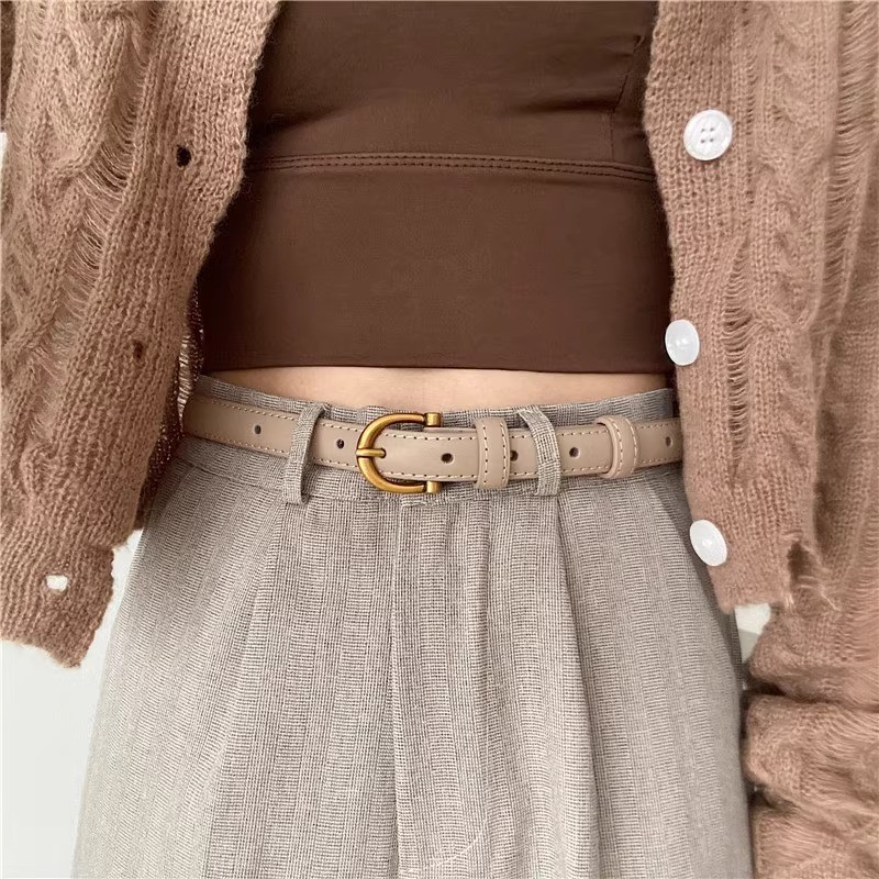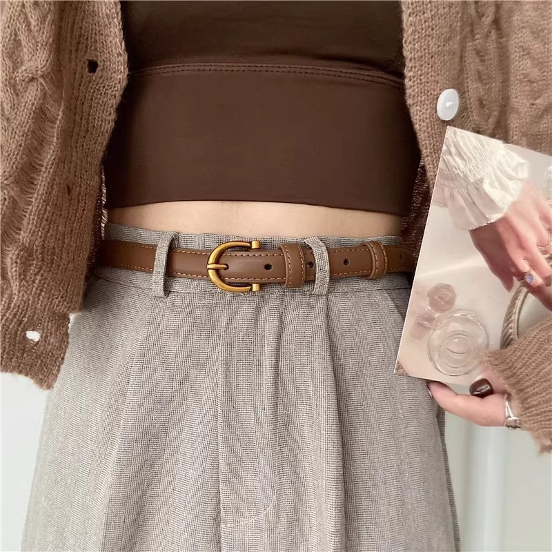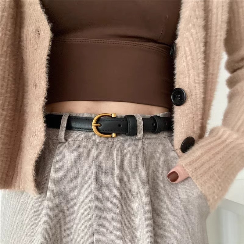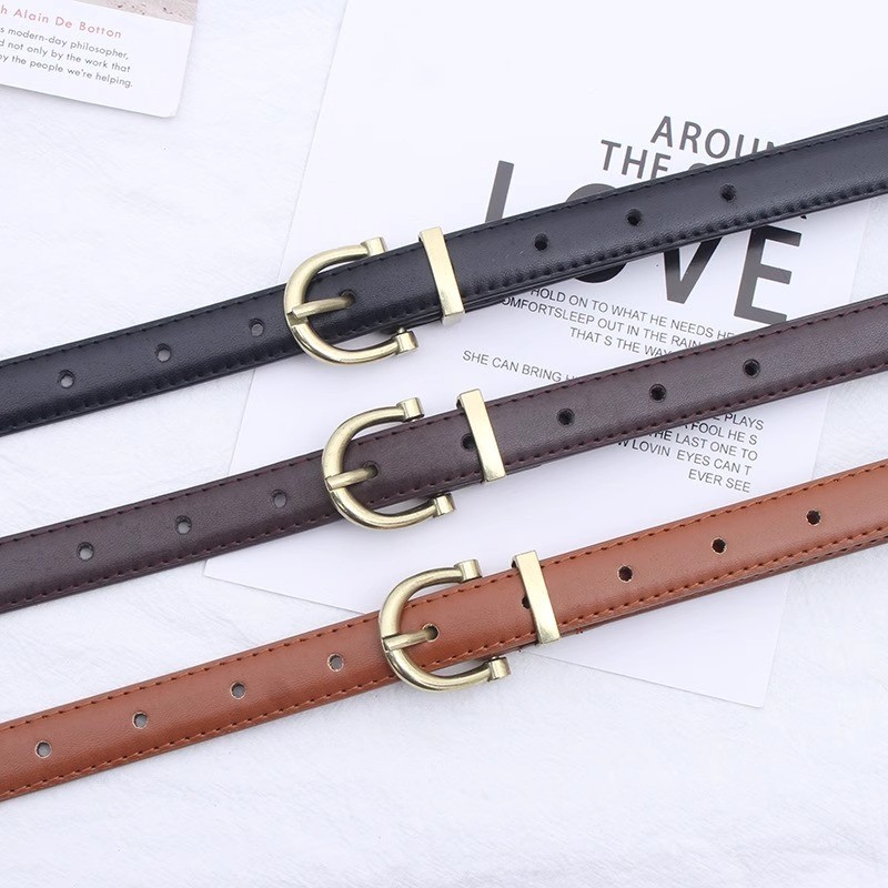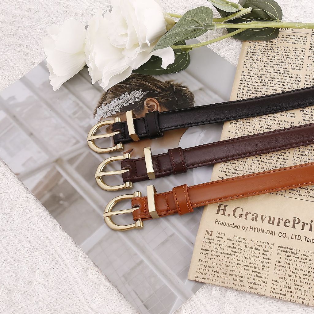 Miss_J พร้อมส่งจากกทม?เข็มขัดหนัง PU ดีไซน์แคบสีทองรูปตัว C สไตล์เรโทร เข็มขัดอเนกประสงค์