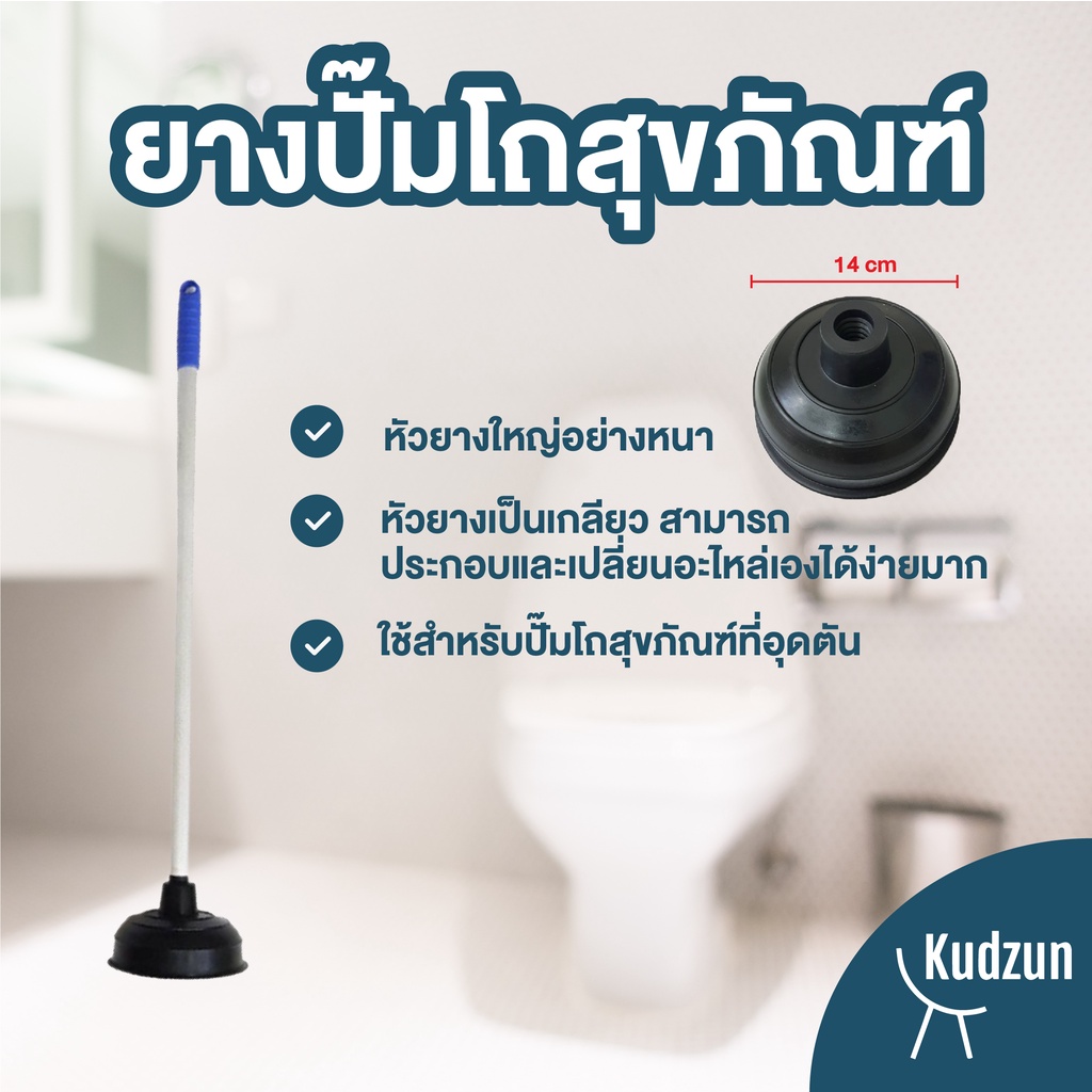 Kudzun ยางปั๊มโถสุขภัณฑ์ ที่ปั๊มโถสุขภัณฑ์ ด้ามอลูมิเนียม ยาว 72 ซม. NiceClean