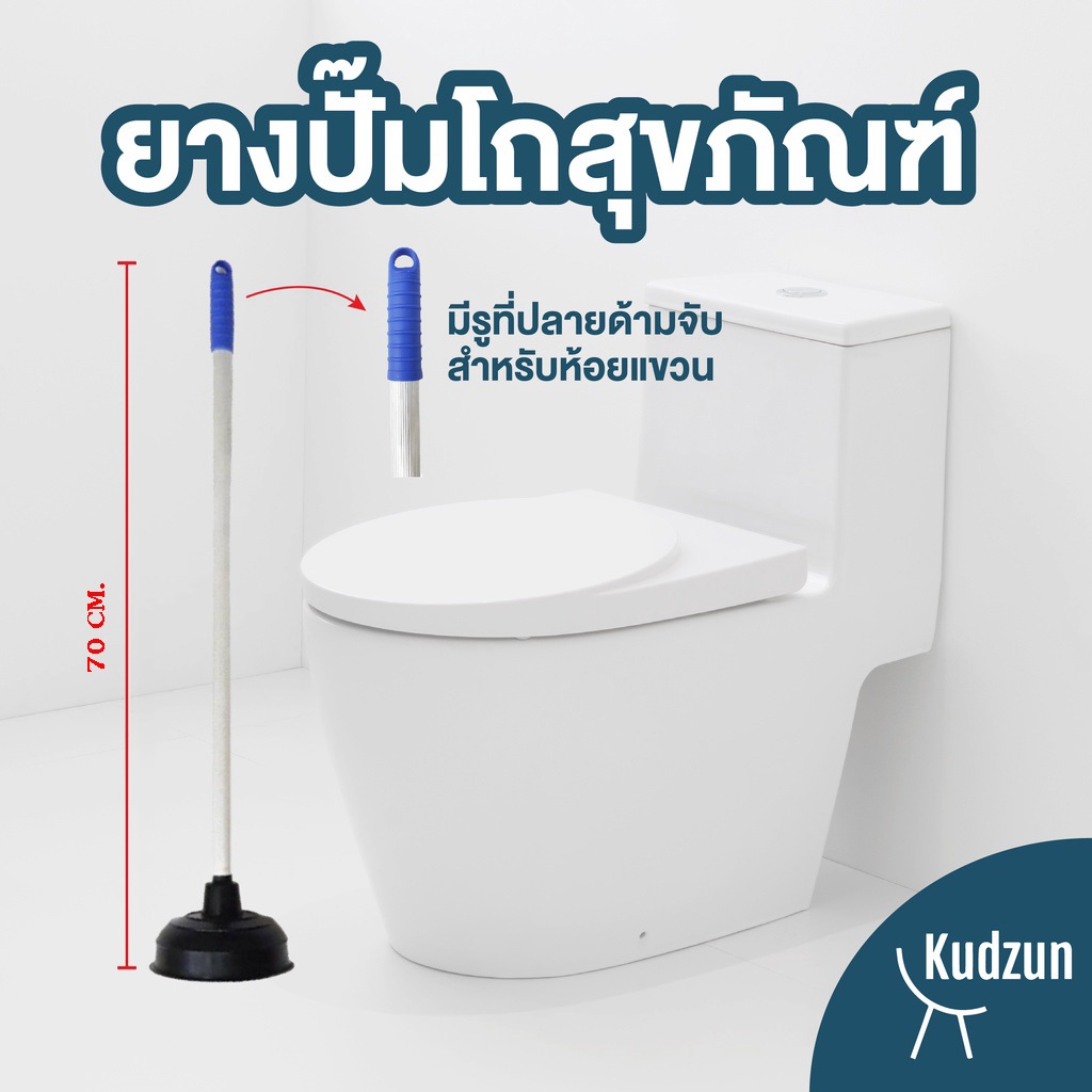 Kudzun ยางปั๊มส้วม ที่ปั๊มส้วม ด้ามอลูมิเนียม ยาว 70 ซม. NiceClean