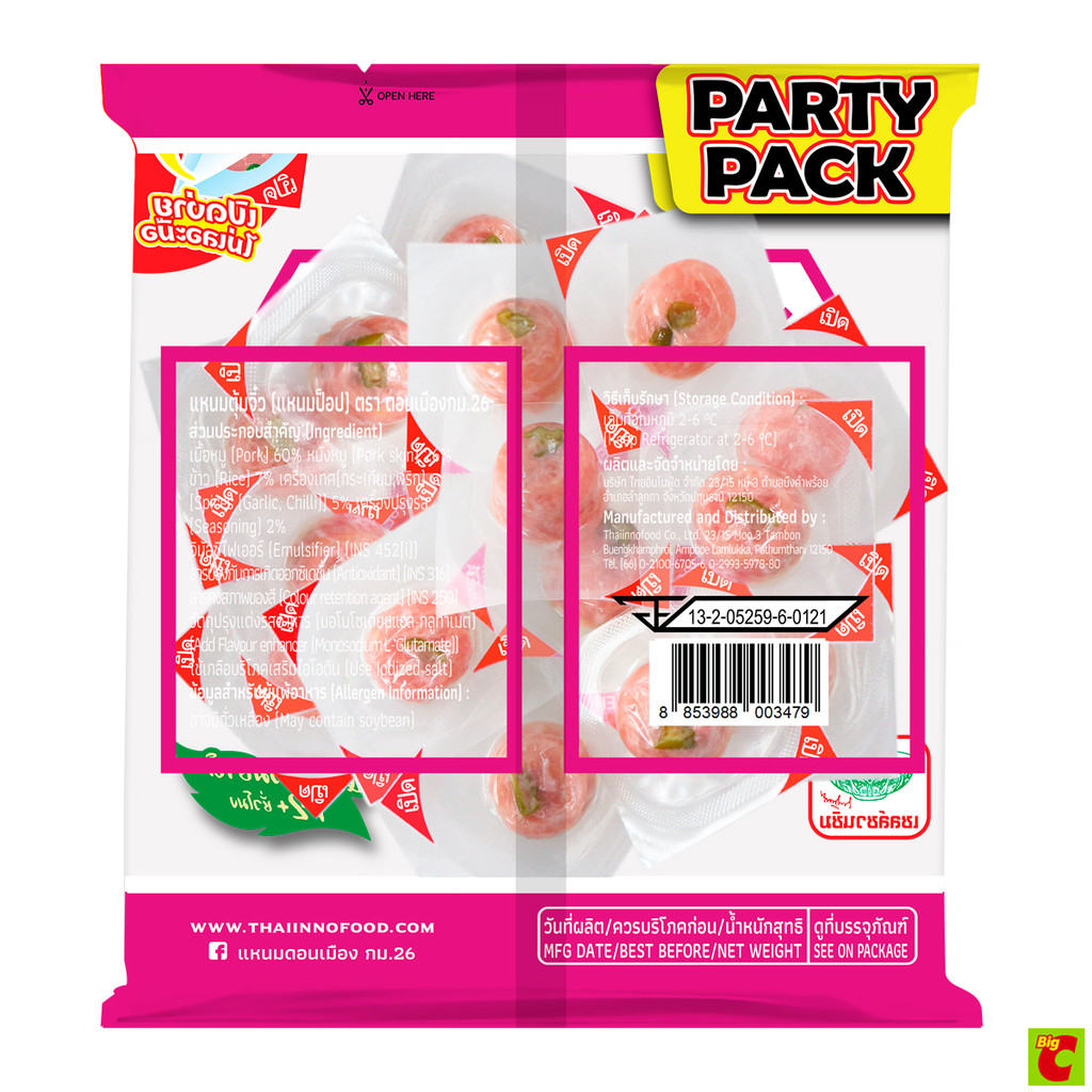 แหนมป็อบ แหนมตุ้มจิ๋วแบบใหม่ ตราแหนมดอนเมืองกม.26 ผลิตจากวัตถุดิบเนื้อหมู และหนังหมู คุณภาพดี รสชาติต้นตำรับ แหนมหมูแท้ๆ รสชาติอร่อย ต้นตำรับแหนมดอนเมือง ไม่ใส่สารเร่งเปรี้ยว