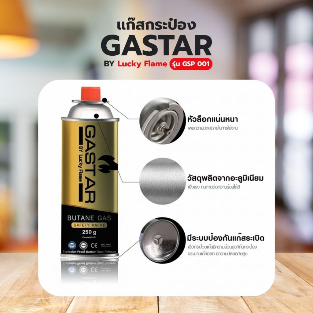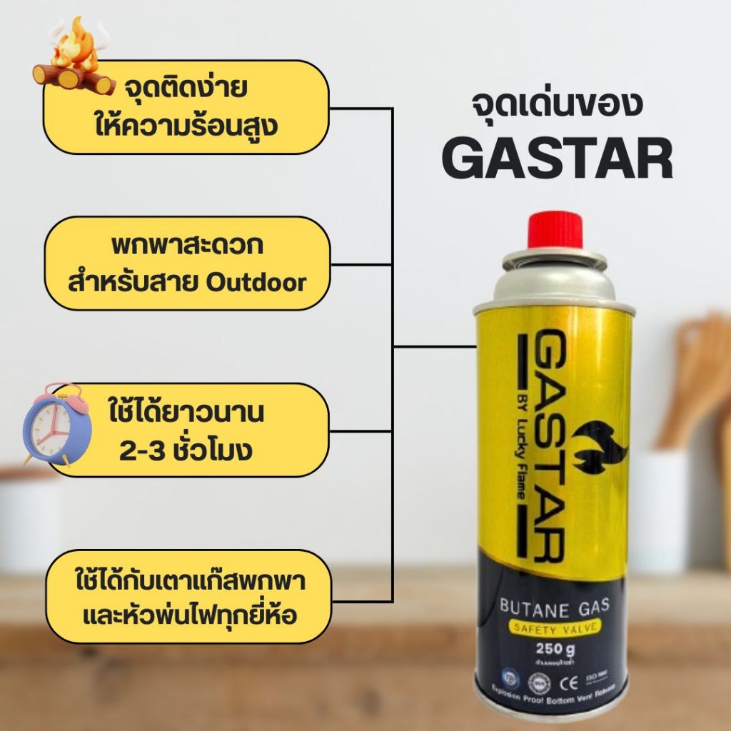 * แก๊สกระป๋อง GASTAR By Lucky Flame ก๊าซบิวเทนคุณภาพสูง รุ่นใหม่ ใช้ทน ใช้นาน