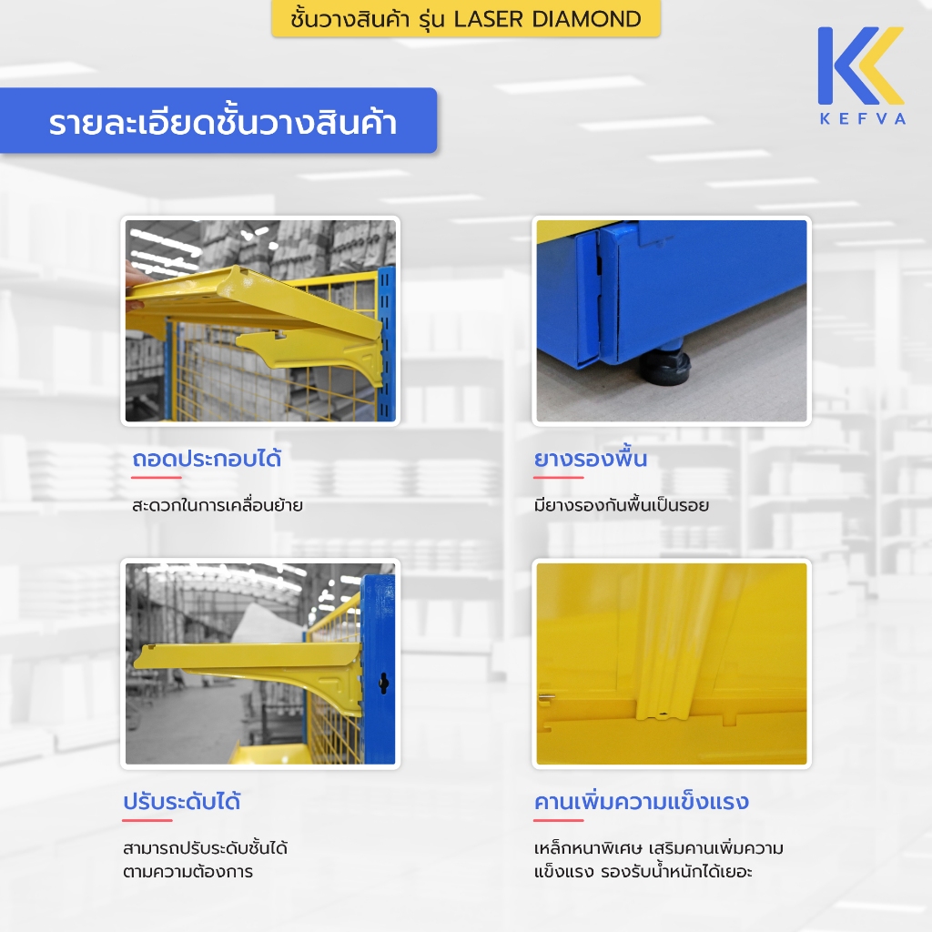 ชั้นวางสินค้า สีพิเศษ (สีน้ำเงิน+เหลือง) 4 ชั้น รุ่น NDD รับน้ำหนัก 30 kg ล้างสต็อก จำนวนจำกัด!