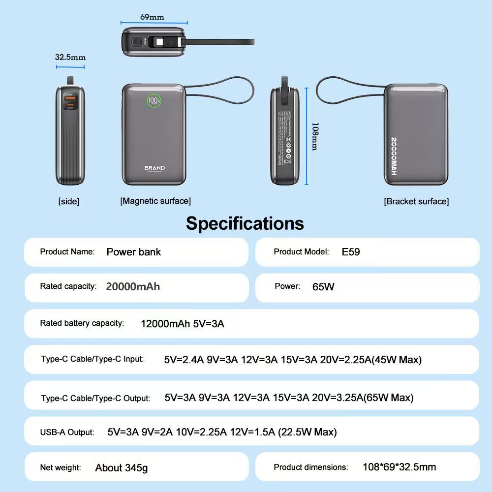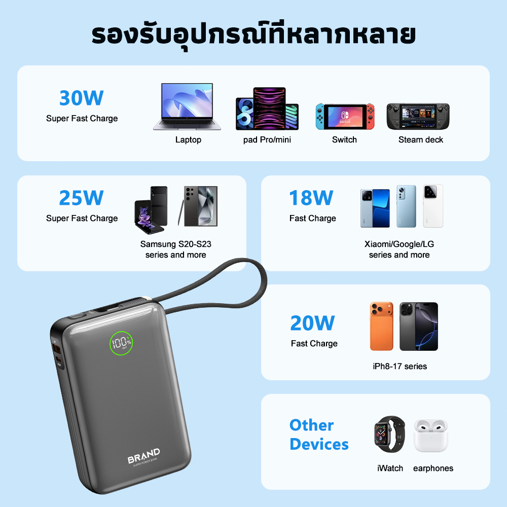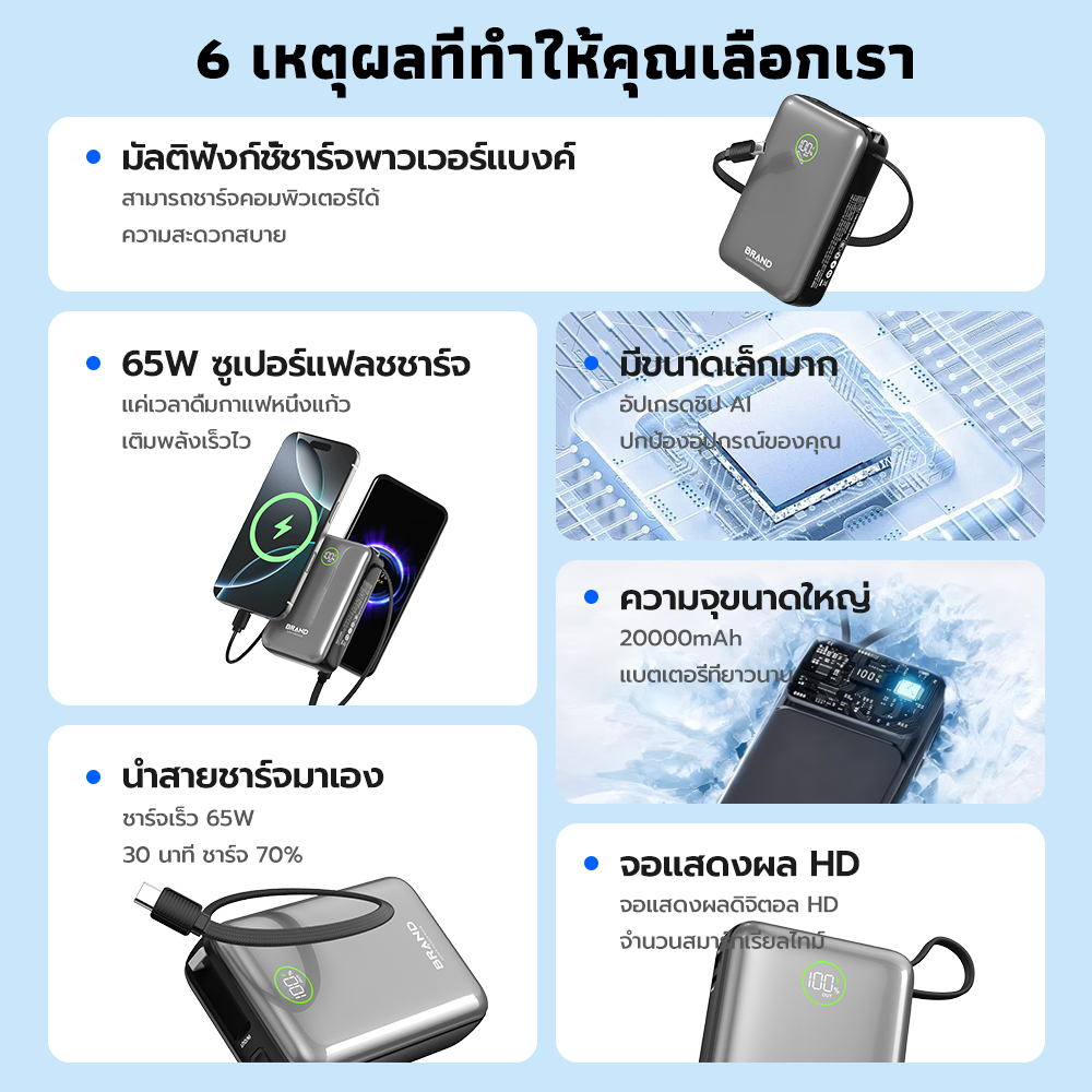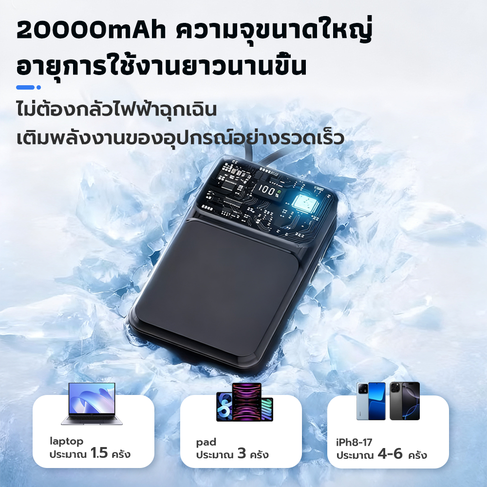 ✨ ความจุสูง 20000mAh - ใช้งานได้ตลอดวัน ชาร์จมือถือได้หลายรอบ