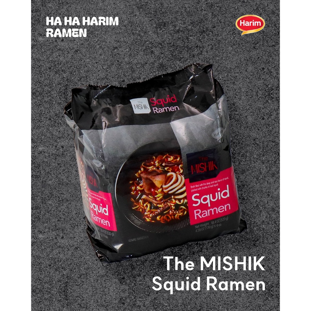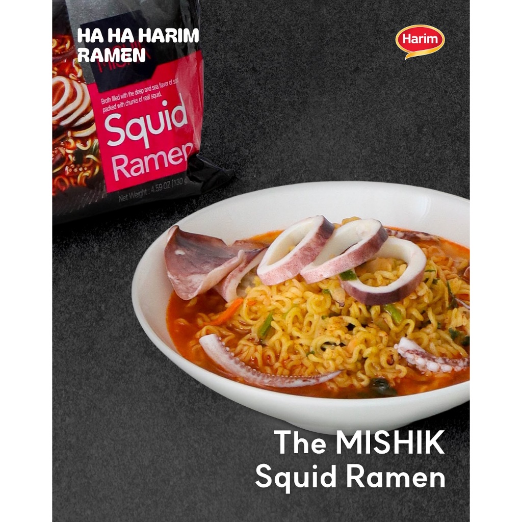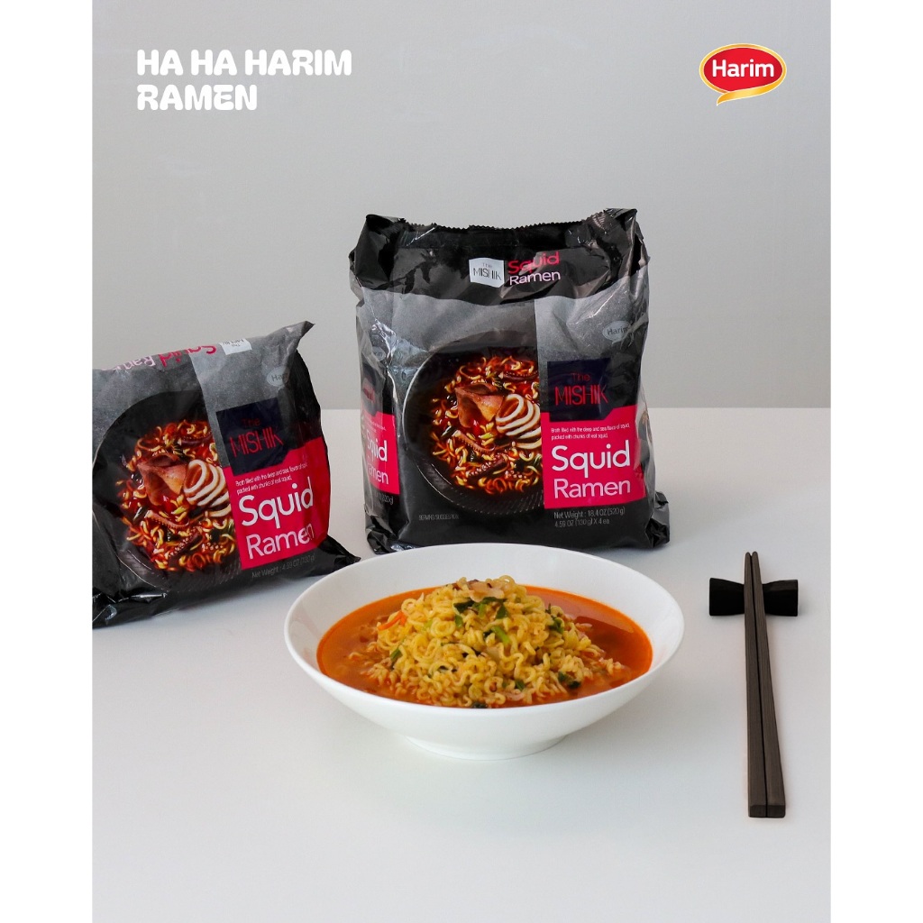 ใหม่ ! HARIM The Mishik Squid Ramen เดอะ มิซิก สควิด ราเมน ขนาด 130 กรัม บะหมี่กึ่งสำเร็จรูปพร้อมซองเครื่องปรุงรส รสปลาหมึก เส้นบะหมี่มีความเหนียวนุ่มและบาง น้ำซุปกลมกล่อมและเผ็ดร้อนกำลังดี พร้อมด้วยชิ้นปลาหมึกแห้งขนาดพอดีคำและสาหร่าย ช่วยให้คุณเพลิดเพลิ