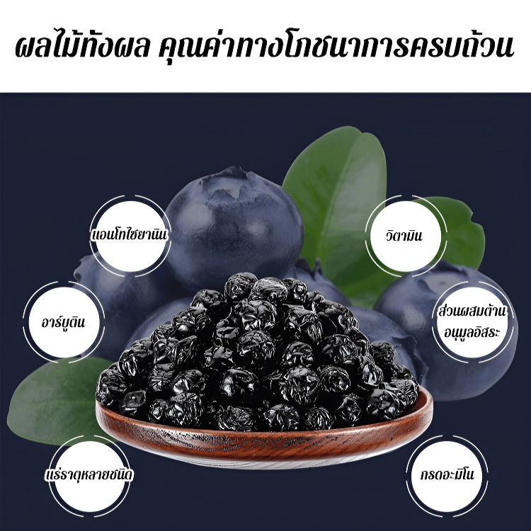 อุดมไปด้วยแอนโทไซยานิน บลูเบอร์รี่แห้ง หวานธรรมชาติอมเปรี้ยวกำลังดี/ขนมติดบ้านผลไม้ฟรีซดรายพรีเมี่ยม