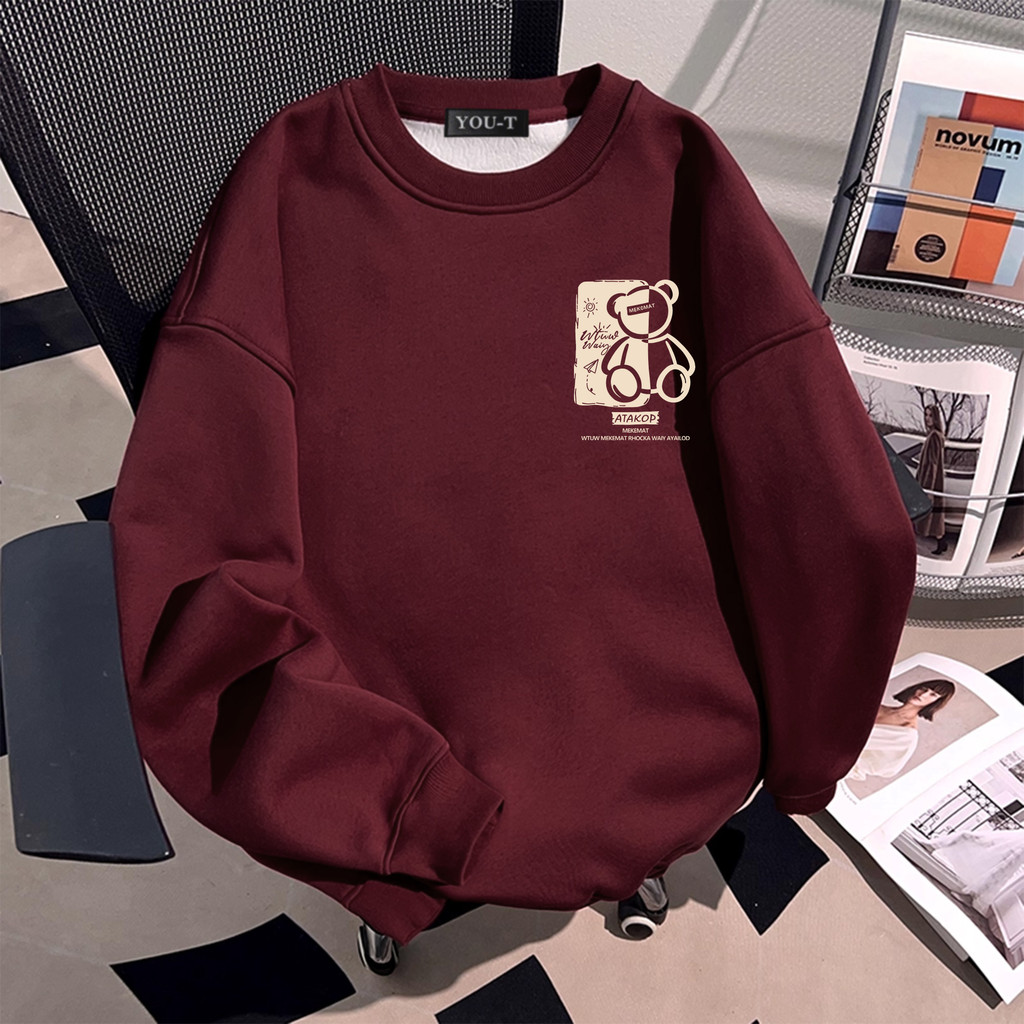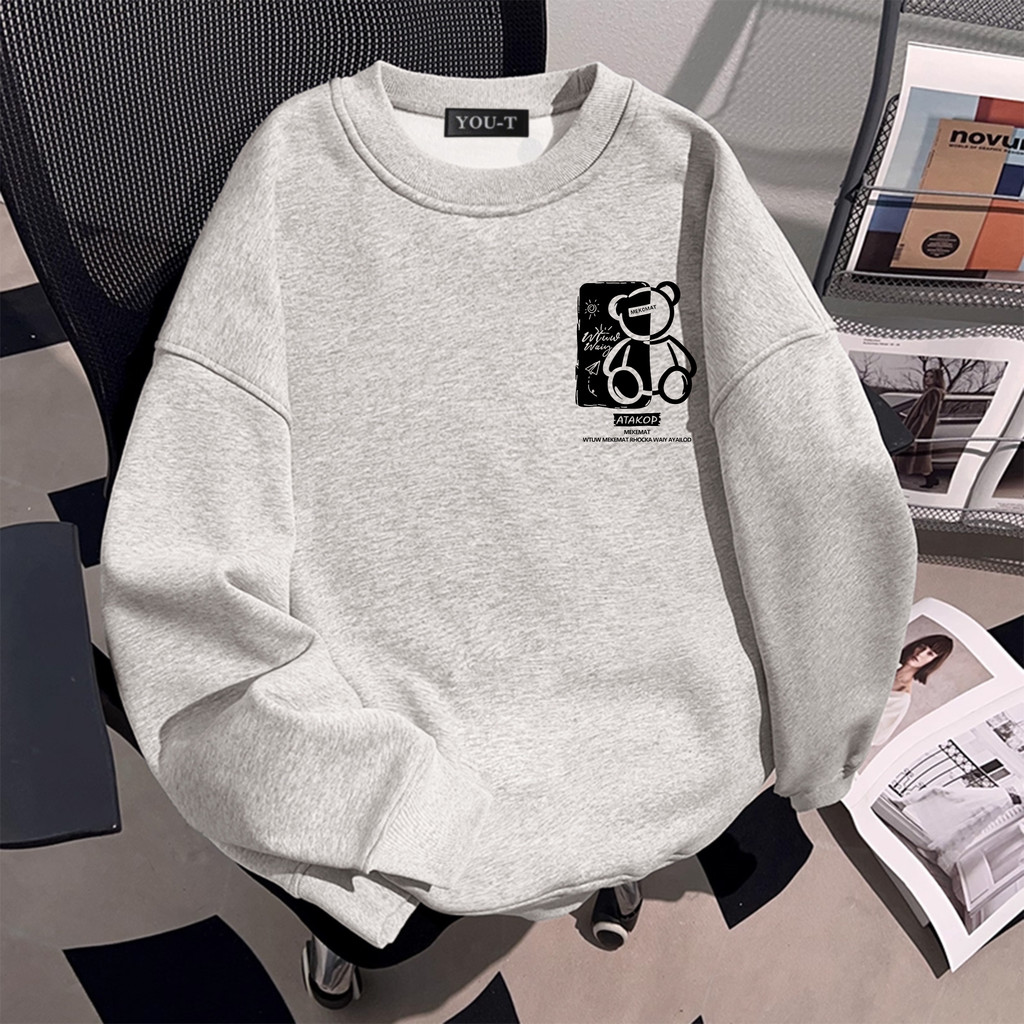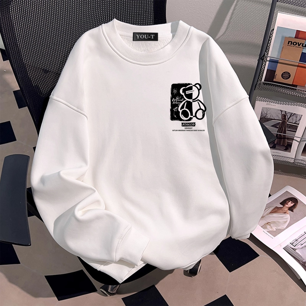?Su.Tee?เสื้อกันหนาวแขนยาว คอกลม ทรงหลวม พิมพ์ลายตัวอักษร ลาย “Bear ATAKOP” สไตล์เกาหลี ผ้าสำลีนิ่มค่ะ