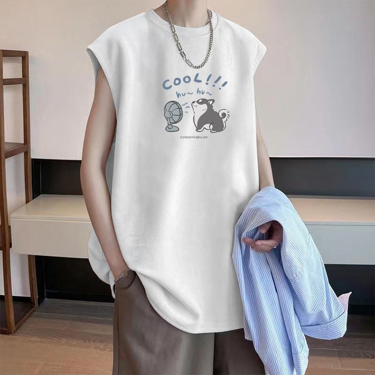 TOMATOPAPA Retro Distressed All-Match Denim สไตล์ไล่โทนสีกีฬาเสื้อกั๊ก Tie-Dye แขนกุดแฟชั่นวิ่ง Casual Fitness Top