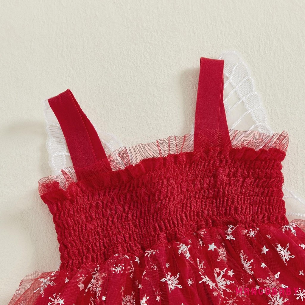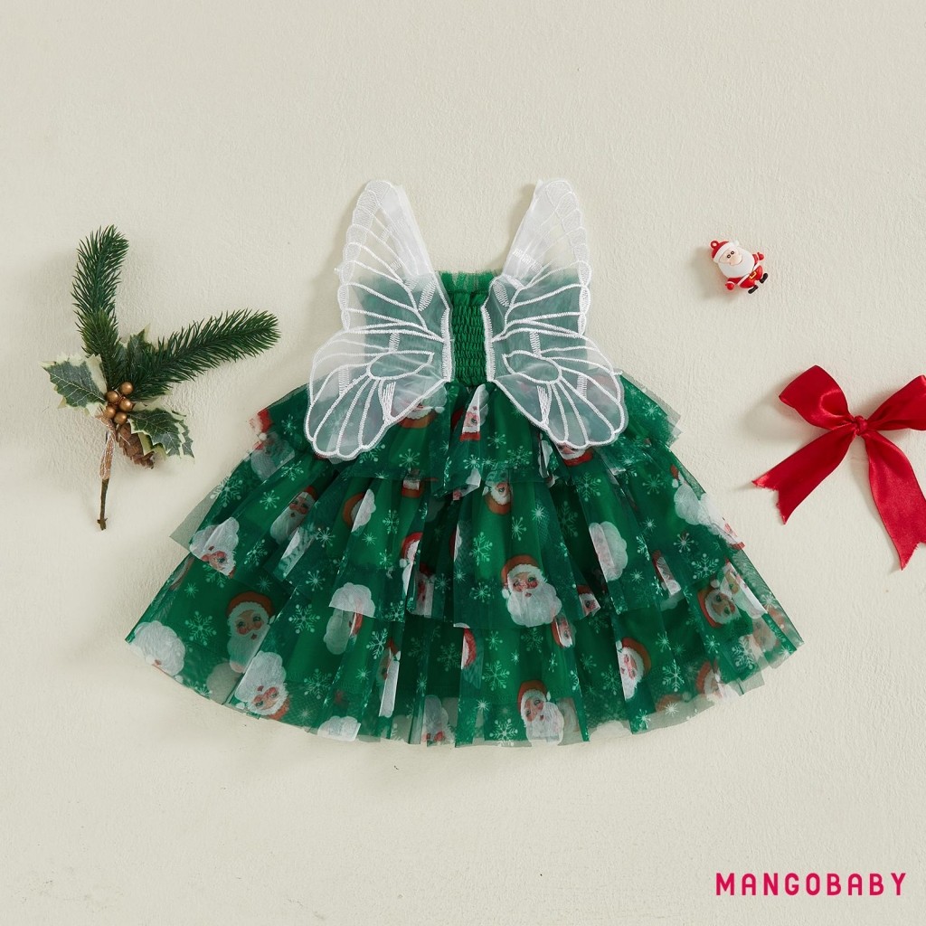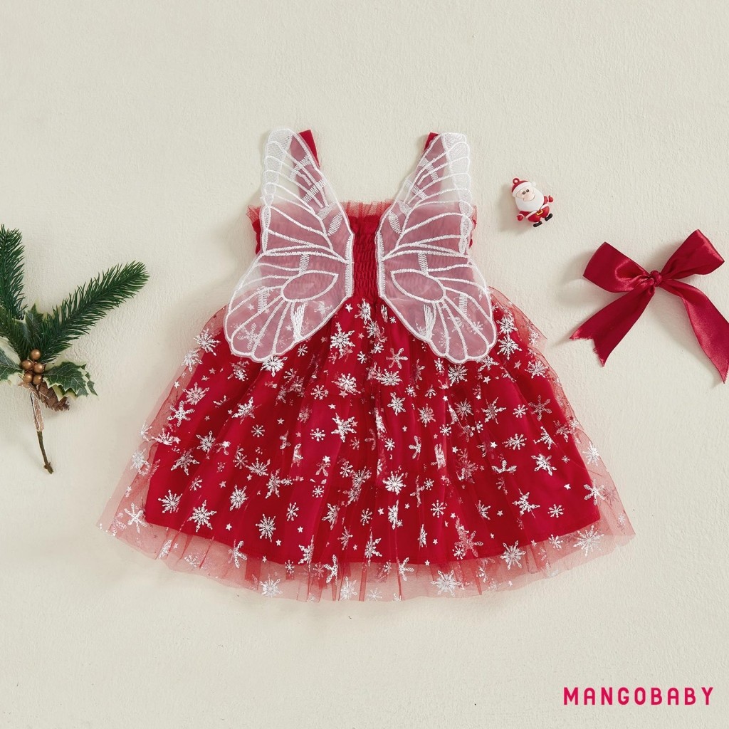 มก-(ลดราคา)เด็กวัยหัดเดินสาวชุดคริสต์มาสเกล็ดหิมะพิมพ์แขนกุด ที พวกคุณ สายชุดเค้กที่มีปีกผีเสื้อ